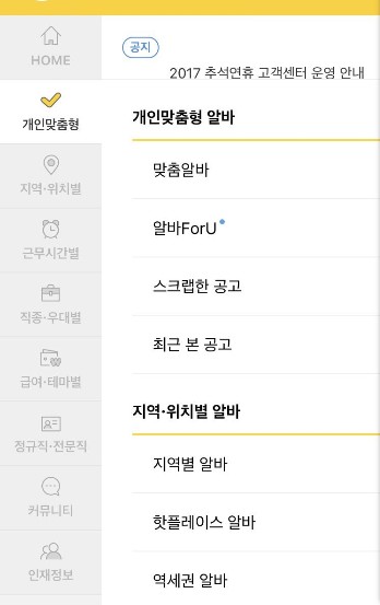 지역별, 직종별 알바, 맞춤알바도 소개해 줄뿐더러 꿀 알바라는 것도 소개해준다. 쉽고 빠르게 일자리를 볼 수 있고, 인재를 구하는 입장에서는 빠르게 공유가 가능하다. 커뮤니티라는 곳에서는 알바와 기업에 대한 소식도 공유되고 있다. 알바 백과사전이라는 것을 통해 아르바이트 구직공고만 보여주는 것이 아니라 사람들이 가장 많이 궁금해하는 정보 등 다양한 지식까지 전달하고 있다.