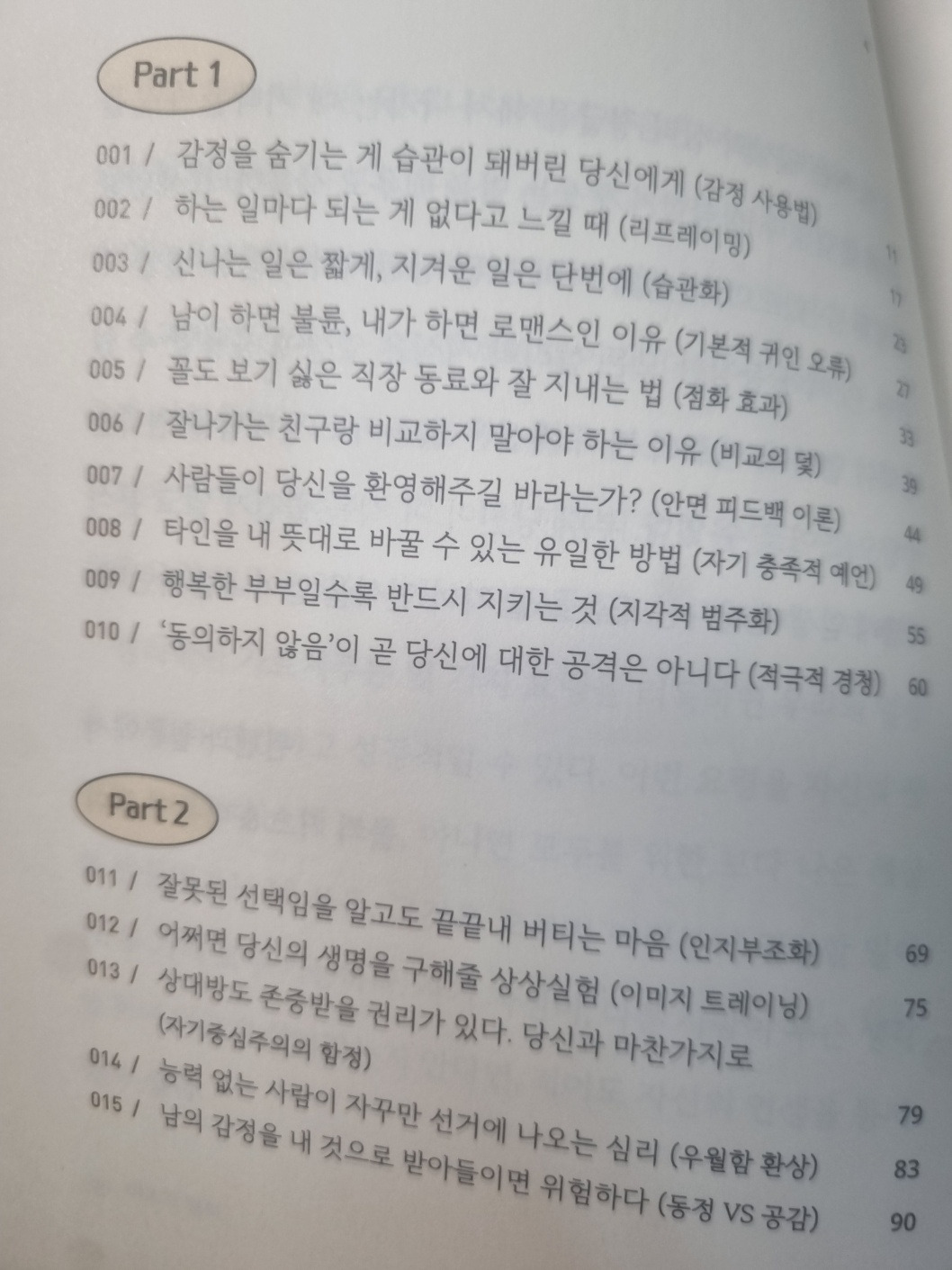 "사람들은 보통 실패나 잘못을 했을 경우 그 탓을 외부로 돌리고 칭찬받을 일을 했을 경우에는 자신이 잘했기 때문이라고 말한다. 그러니까 내가 실패하면 '운이 없었기 때문'이고 타인이 실패하면 '원래 실력이 없는 사람이기 때문'이다. 반대로 내가 성공하면 '내 능력이 워낙 뛰어나기 때문'이고 타인이 성공하면 '운이 좋아서'라고 그 원인을 외부로 돌린다." 28p