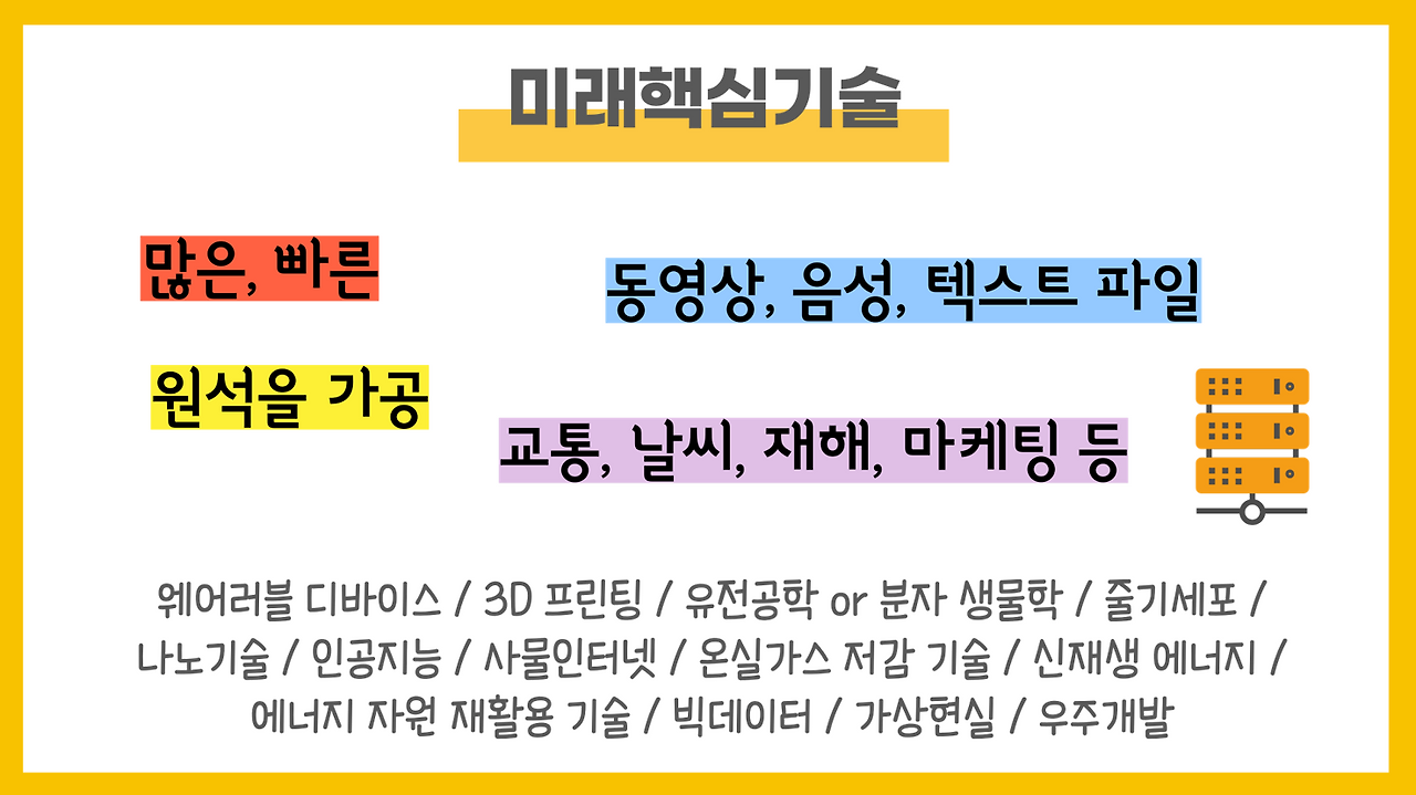 모둠별로 앉아 있는 학생들은 이제부터 팀별 점수 따기에 들어갑니다. 미래 핵심기술을 키워드로 던져서 첫 번째 키워드에서 맞추는 팀에는 도장 3개, 두 번째 키워드에서 맞추는 팀에는 도장 2개... 불꽃튀는 신경전이 벌어지지만 의외로 정답은 교묘하게 피해 가는 친구들. '4차산업혁명'이다 뭐다 말들은 참 많이 듣지만, 정작 정확히 아는 친구들은 많지 않다는 것을 게임을 통해 알게 됩니다.