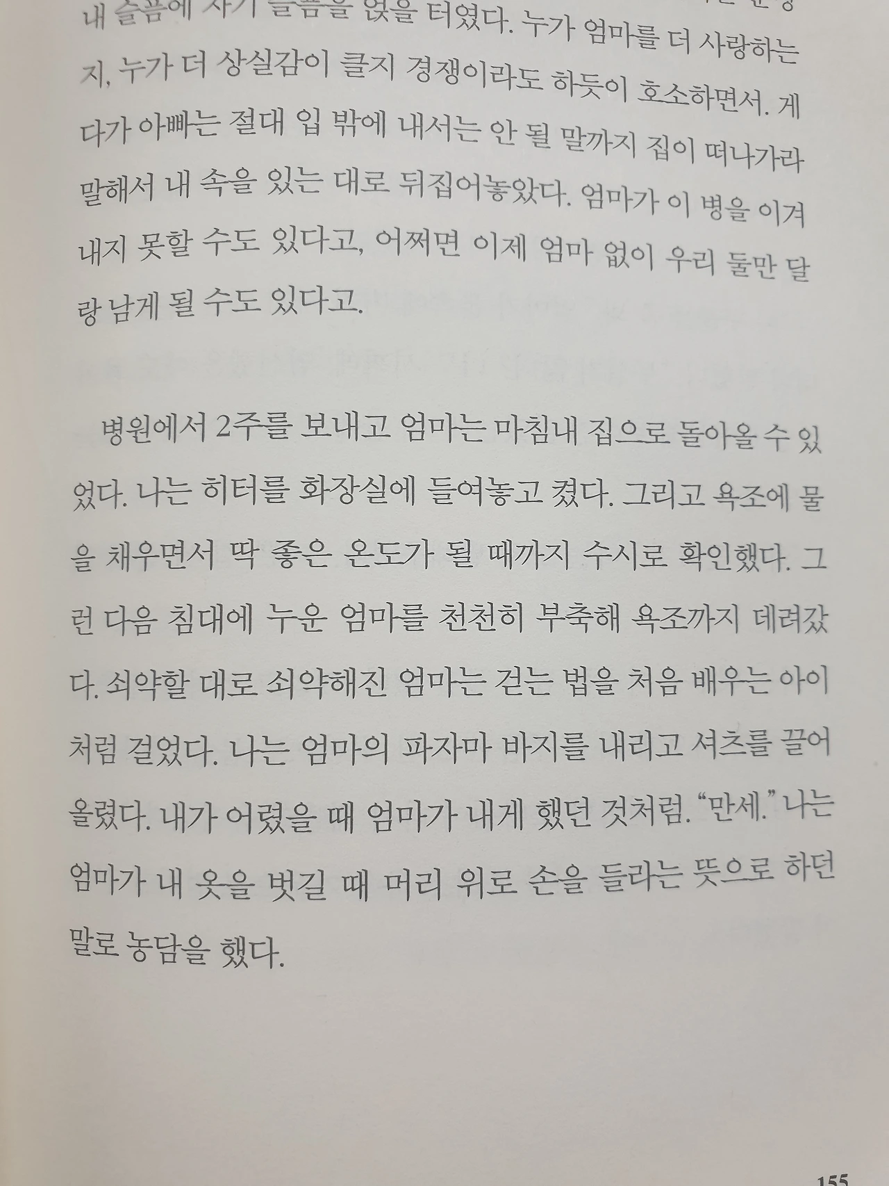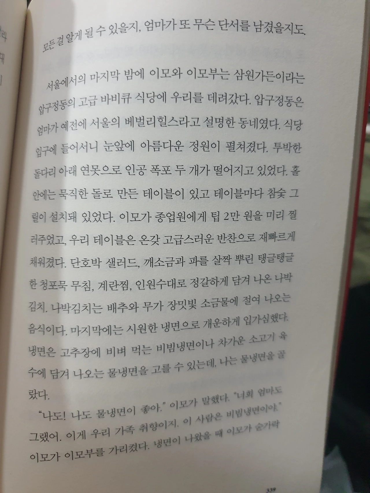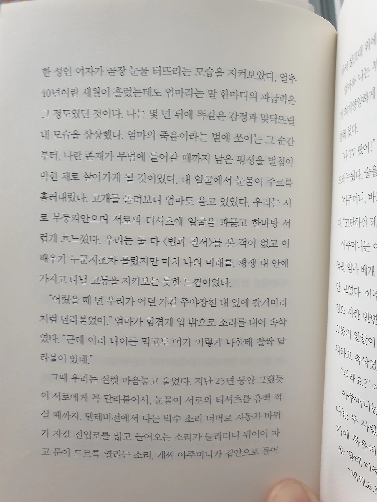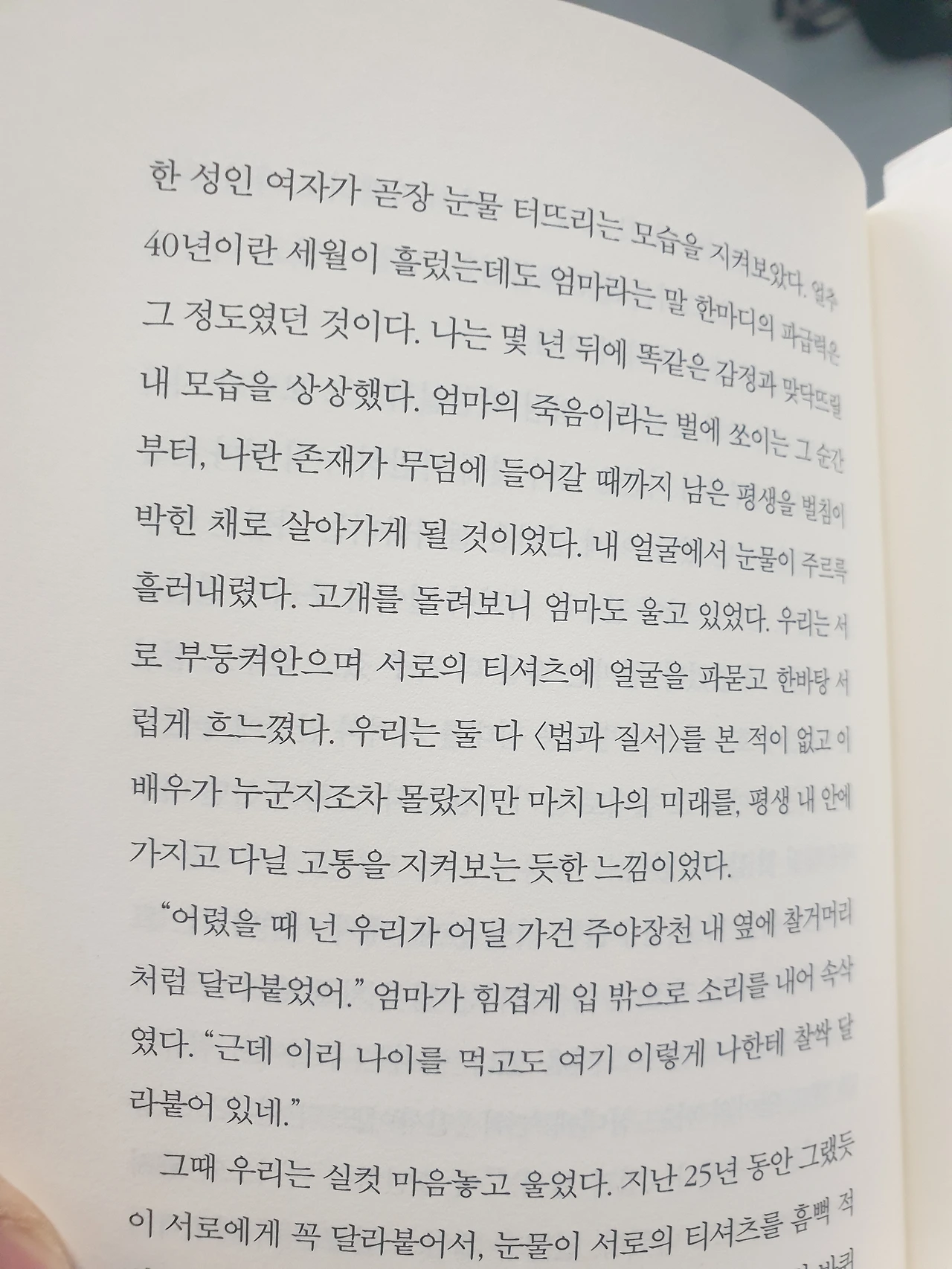 백인 아빠와 한인 엄마 사이에서 태어난 여자의 성장 과정과 엄마의 암투병과 죽음을 주축으로 일어난 일들을 기록한 책이다. 소설같은 이야기가 빠져들게 만든다. 다문화 가정의 자녀로써 정체성의 혼란을 겪으며 많은 방황과 부모와의 갈등으로 격화되고, 결국 엄마의 죽음으로 인한 부재로 인해 깊은 모녀간의 관계를 깨닫게 된다.