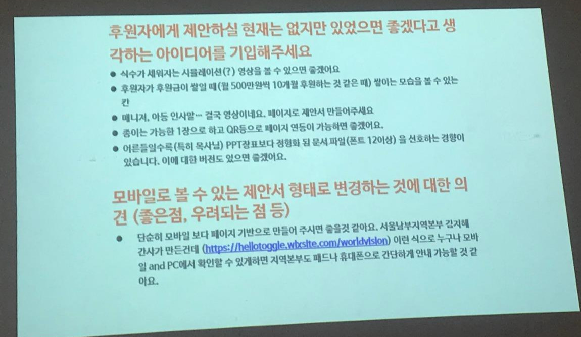 어쨌든, PNS 활성화를 위해서는 후원자의 경험을 풍부하게 해줄 새로운 보고서 형태 뿐 아니라 자원과 사업의 매칭이 원활하게 될 수 있는내부 시스템과 새로운 제안 방식(제안서 개선 포함)이 필요하다. 우선 간단히 해볼 수 있는 내부 시스템을 마련하도록 프로젝트 뱅크 개발을 스프린트 2차로 진행해 보았다.