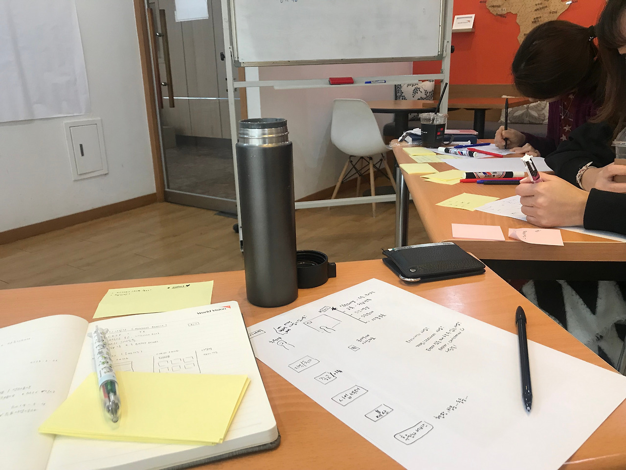 스프린트의 과정도 공통된 문제 이해와 스케치 그리고 바로 프로토타입 제작으로 간략화 했다. 스프린트 1차를 모두 경험해 봤기에 스프린트 방식에 대한 이해도가 높고 시간도 절약할 수 있었다.