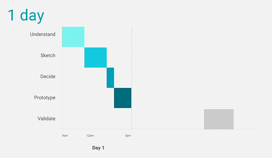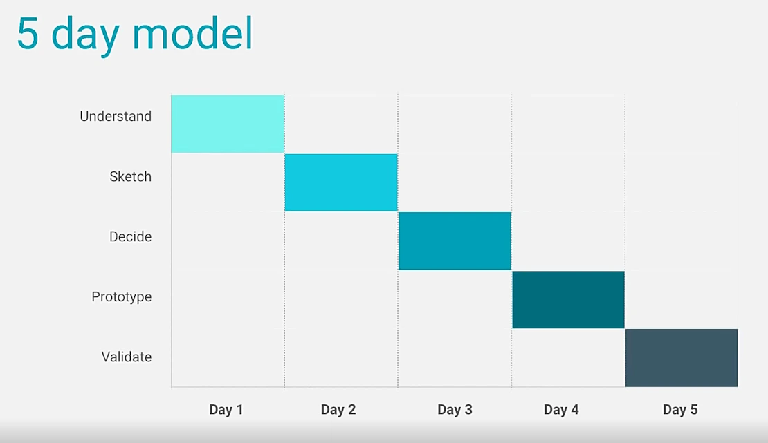 전형적인 스프린트 (디자인 씽킹)의 방식은 5일의 과정으로 구성되어 있다.