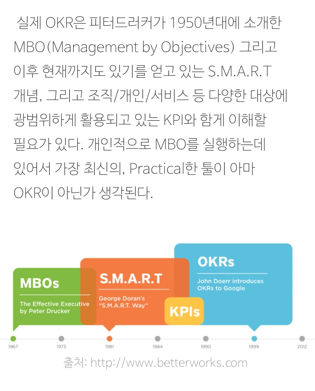 그에 대해서 지속적으로 보완하면서 구글이 사용하는 OKR까지 진화했습니다.