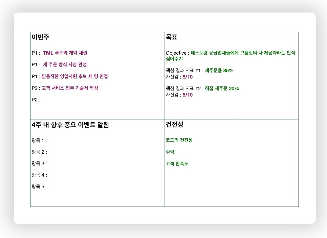 이번 분기에 꼭 해야하는 하나의 목표를 정하는 것이 핵심입니다.
