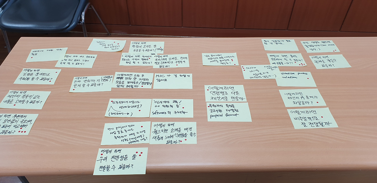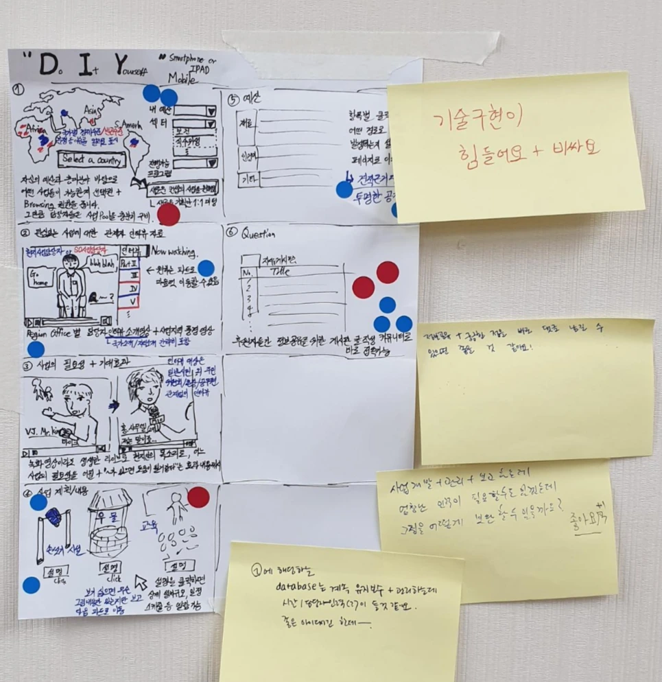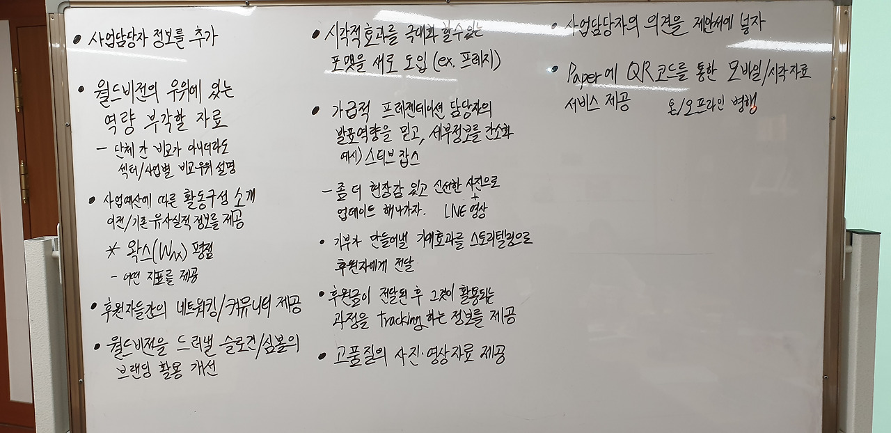 우리는 두개의 아이디어를 가지고 팀을 나눠서 각각의 장점을 살린 '후원하고 싶은 제안서'를 만들기로 했다.