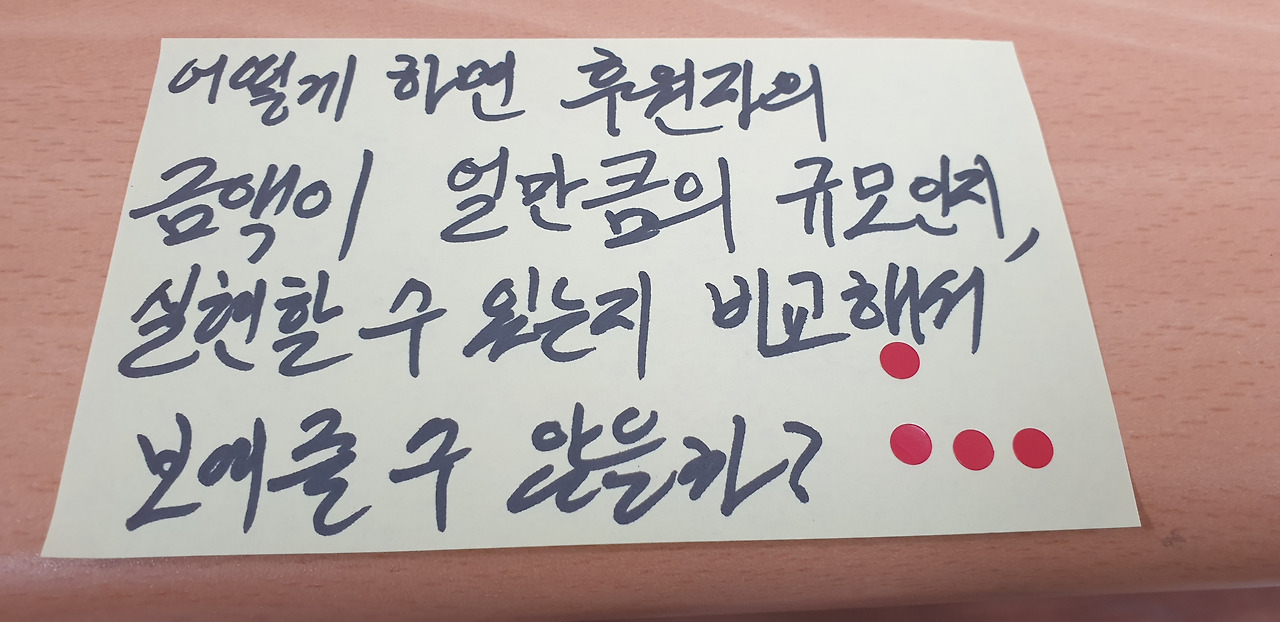 내가 4년간 매달 50만원씩 적금하여 5천만원을 만들었다. 의미있는 일에 사용하고 싶어서 피같이 모음 5천만원을 후원하려고 하는 중이다. 과연 월드비전 사업 제안서를 받아보고 피같은 5천만원으로 후원하고 싶은 제안서일까 생각해봤을 때, 대답은 '노'였다. 그렇다면 내가 받고 싶은 제안서는 무엇일까?
