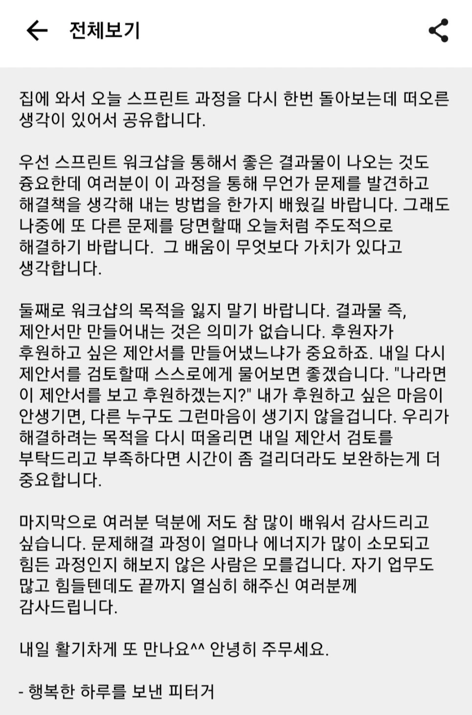 그런 마음을 담다. 세번째 디자인 스프린트를 진행하고 집에 와서 되돌아보면서 떠오른 생각을 스프린트 참석자들과 공유한 내용이다.