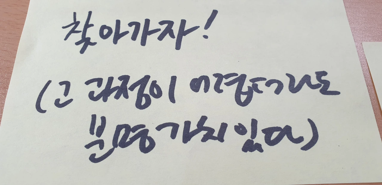 그 인터뷰 과정을 녹화하여 고객이 이용하는 모습과 인터뷰 내용을 통해서 우리가 발견한 것들을 정리하는 시간을 마련했다. (보통은 인터뷰 진행하는 동안 옆방에서 그 인터뷰 과정을 실시간으로 관찰하며 배울점과 적용점을 발견한다. 우리는 시공간의 제약으로 인해 인터뷰 과정을 녹화하여 별도의 시간을 마련해서 인터뷰 녹화 영상을 보면서 그 과정을 진행했다.)
