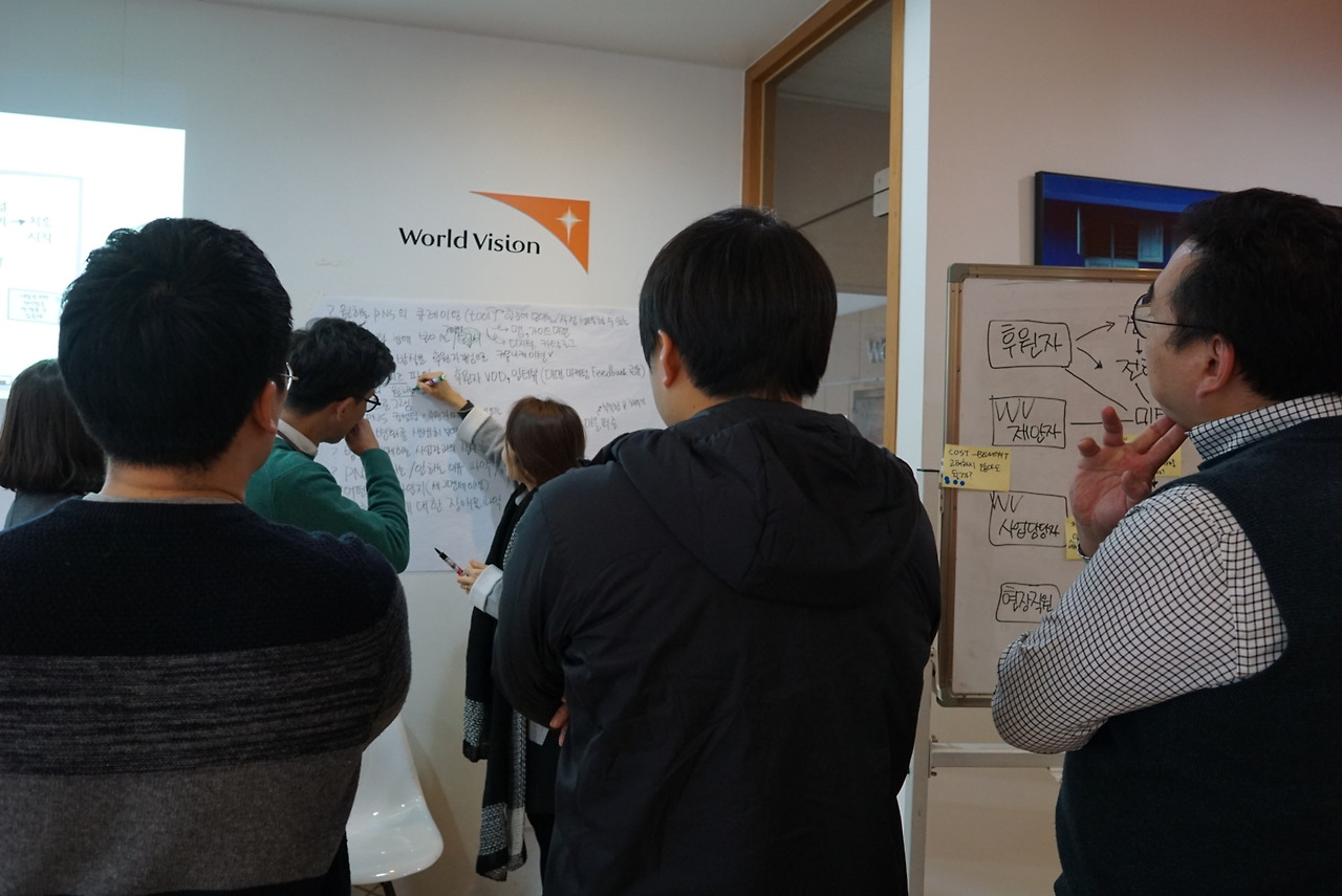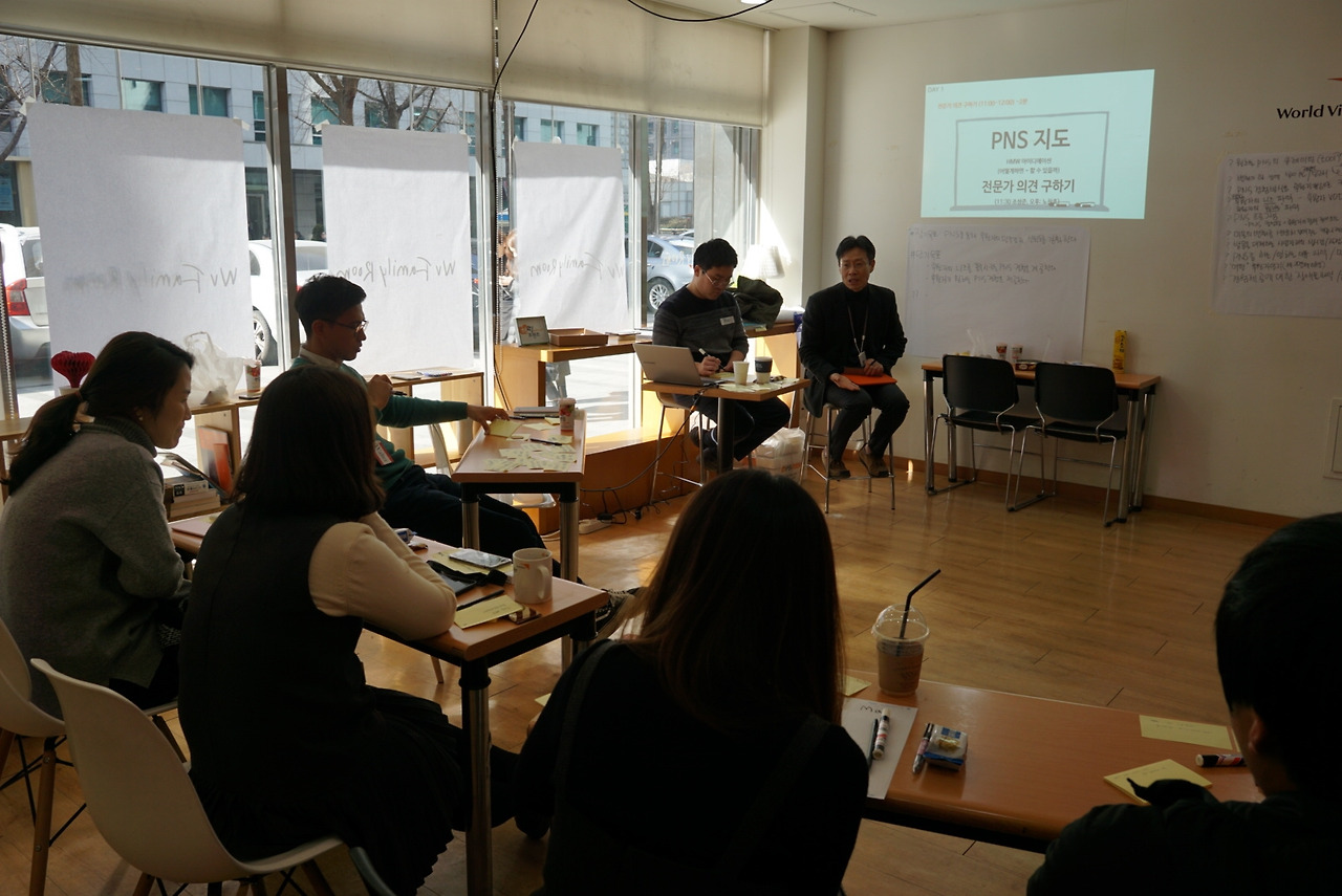 오후 일정은 우리가 그린 PNS 지도를 검증할 '전문가 의견 구하기'활동을 했다. '전문가'라는 타이틀이 거창한데, 내부 직원중에 PNS 모금상품을 후원자에게 많이 소개한 베테랑 모금활동가를 초대하여 우리가 그린 PNS 지도를 보여주고, 전문가가 생각하는 PNS value chain의 문제점 혹은 아이디어를 들어보는 과정이다.