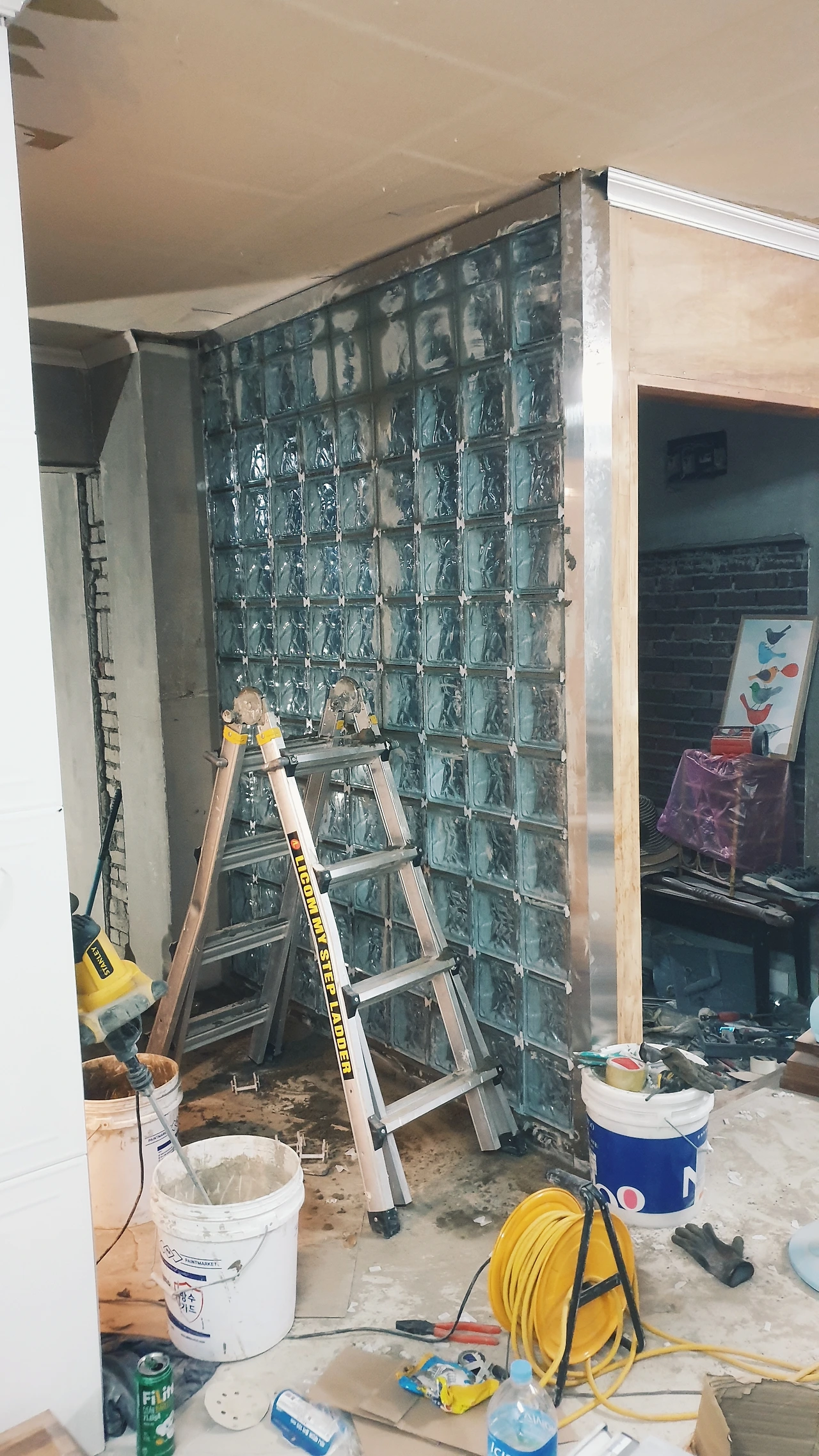 두꺼운 유리도 철거하고 마지막으로 다시 한번 글라스블록을 상상으로 시공해보니(마인드 시공), 보기에 나쁘지 않았다.