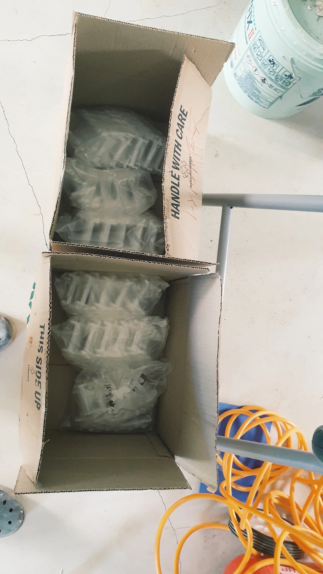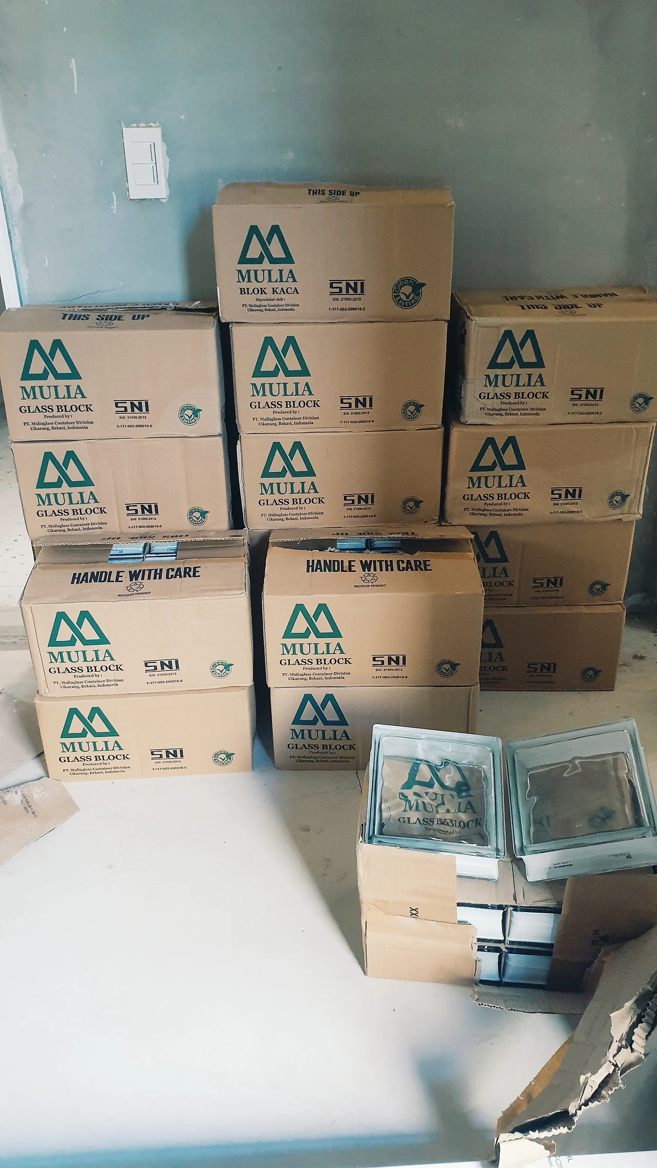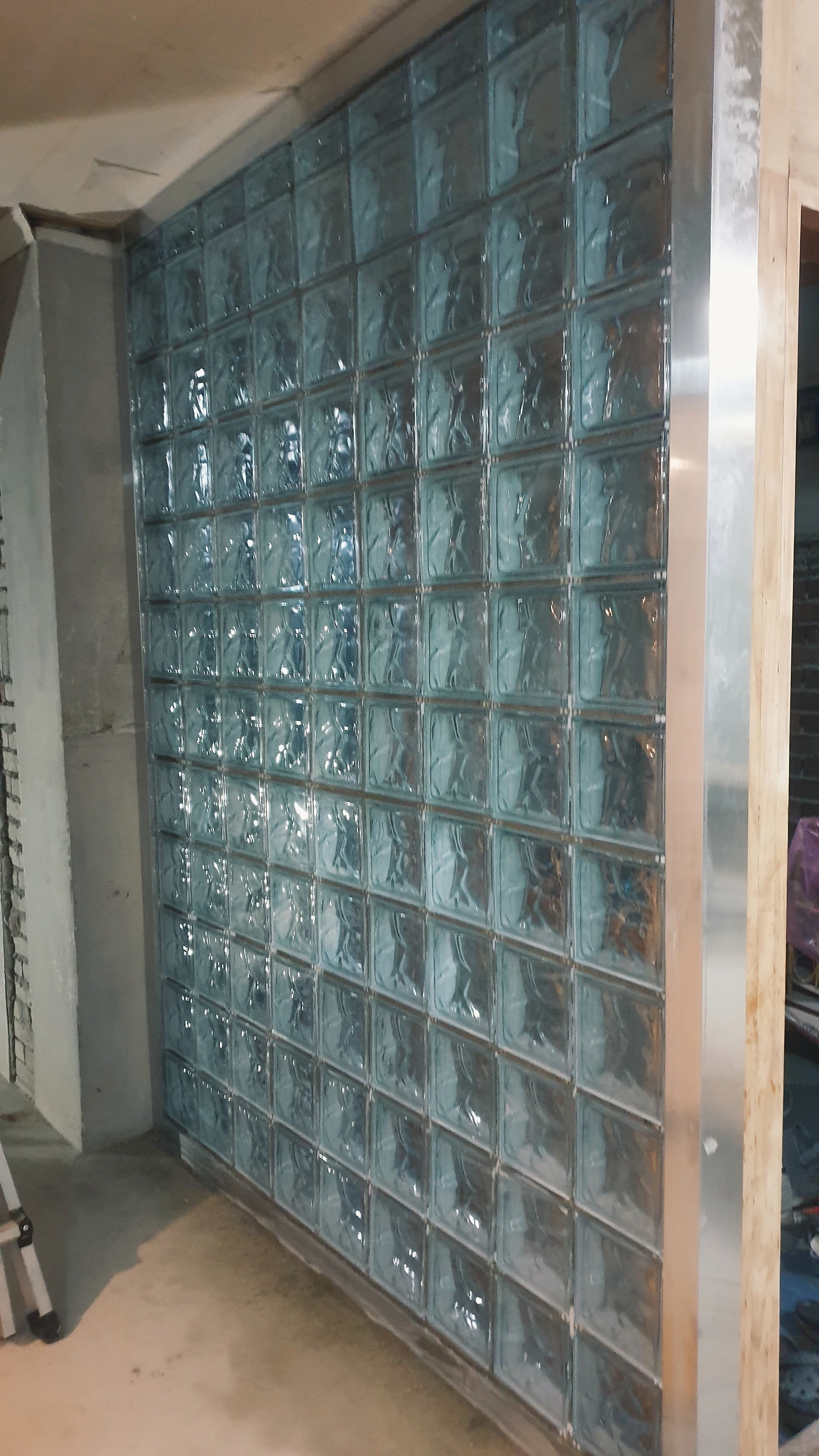 글라스블록은 재단한 치수에 맞춰서 수량을 주문하고, 블록수에 맞게 스페이스도 구매했다. 그러나 문제는 프레임을 어디서 제작하냐다. 주변 공업사를 몇 군데 연락하여 도면을 그려주면 제작해서 보내준다는 곳을 발견했다. 몇 일 걸려서 프레임이 도착하고 프레임을 사각 형태로 고정하고벽돌을 쌓아 올라갔다.