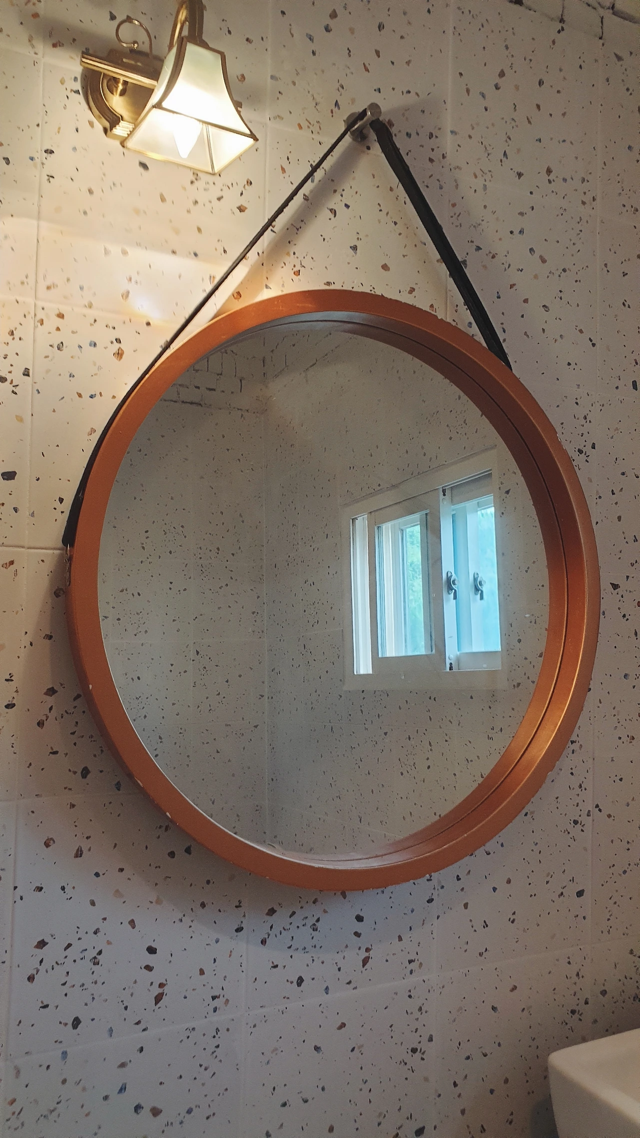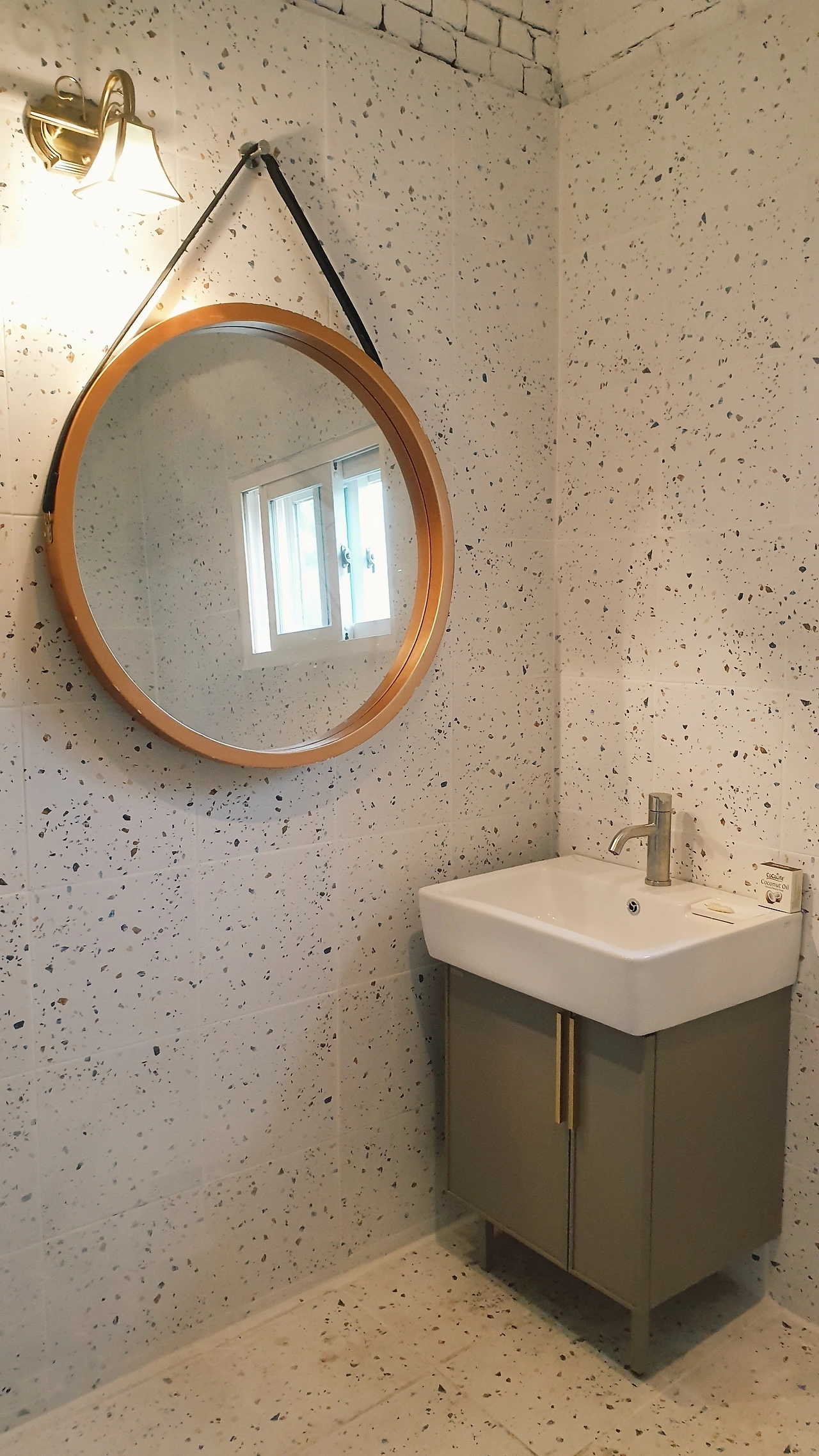 거울과 거울 조명도 달았다. 아쉽게도 세면대 정면에 부착하기에는 거울이 크다. 나중에 이 거울이 마음에 들지 않으면, 예쁘고 작은 거울로 세면대 앞에 설치 해봐야지.