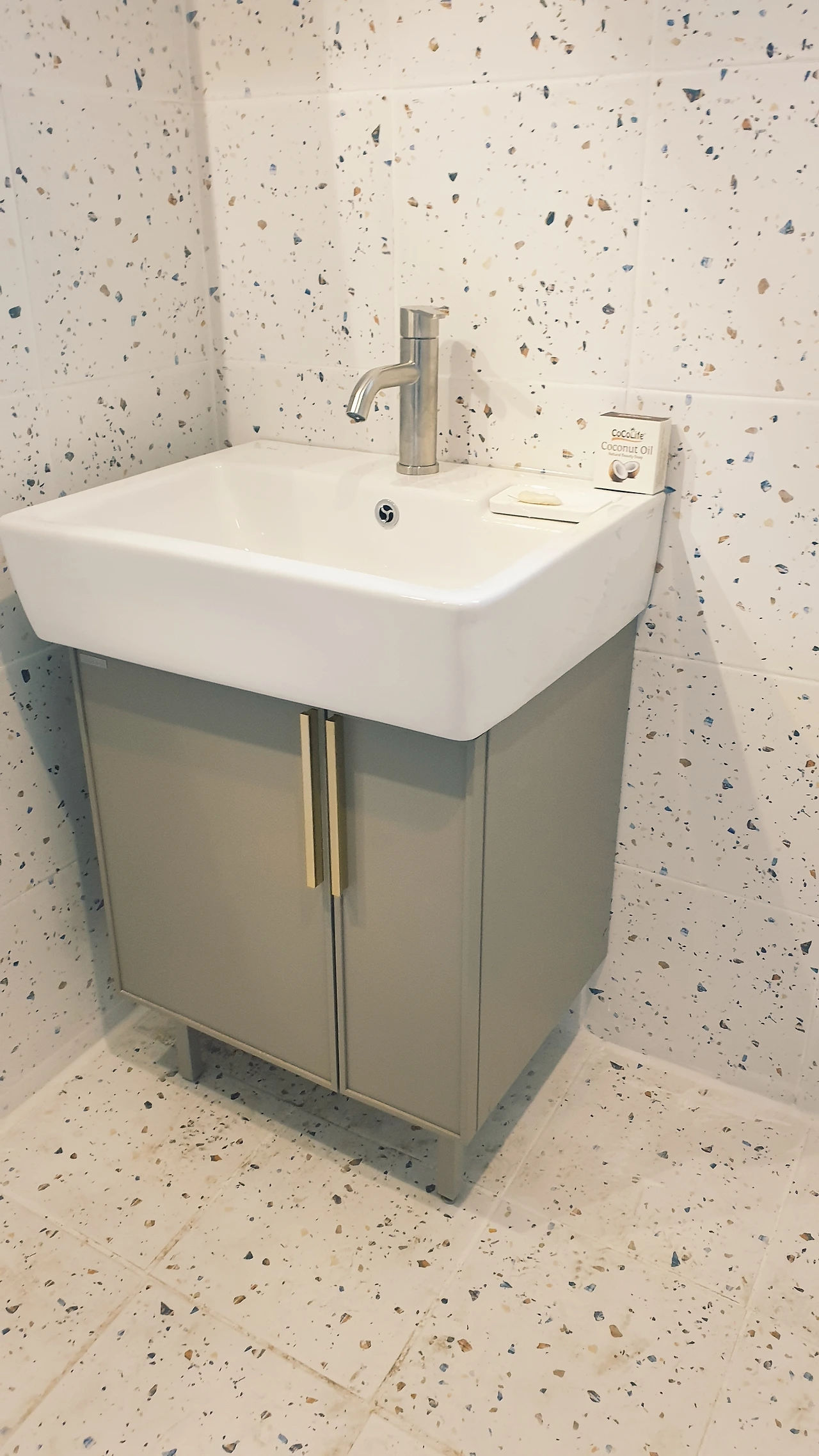 세면대도 하부장이 있는 세면대를 찾느라고 애를 썼다. 물을 쓰는 공간이라서 물에 강한 소재로 된 하부장이어야 한다. 가격도 저렴하지 않다. 세면대와 하부장과 별도로 수전도 구매를 해야한다. 단순한 것이 가장 미적인 것이다.
