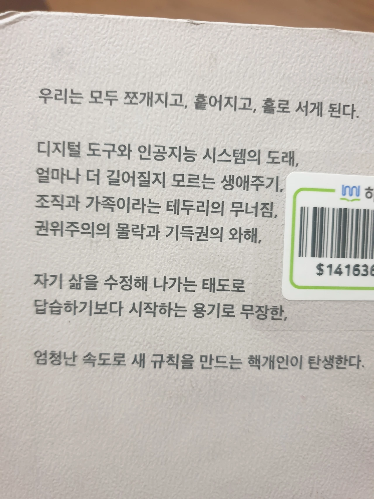 책장을 번 세 번 반복해서 읽고 소장해놓아야할 책이라고 생각했다. 근래 워낙 유명한 책이라서 도서관에서도 앞선 예약자 여러 명을 기다린 끝에 책을 빌릴 수 있었는데, 읽어보니 정말 가치와 통찰이 있는 책이다.