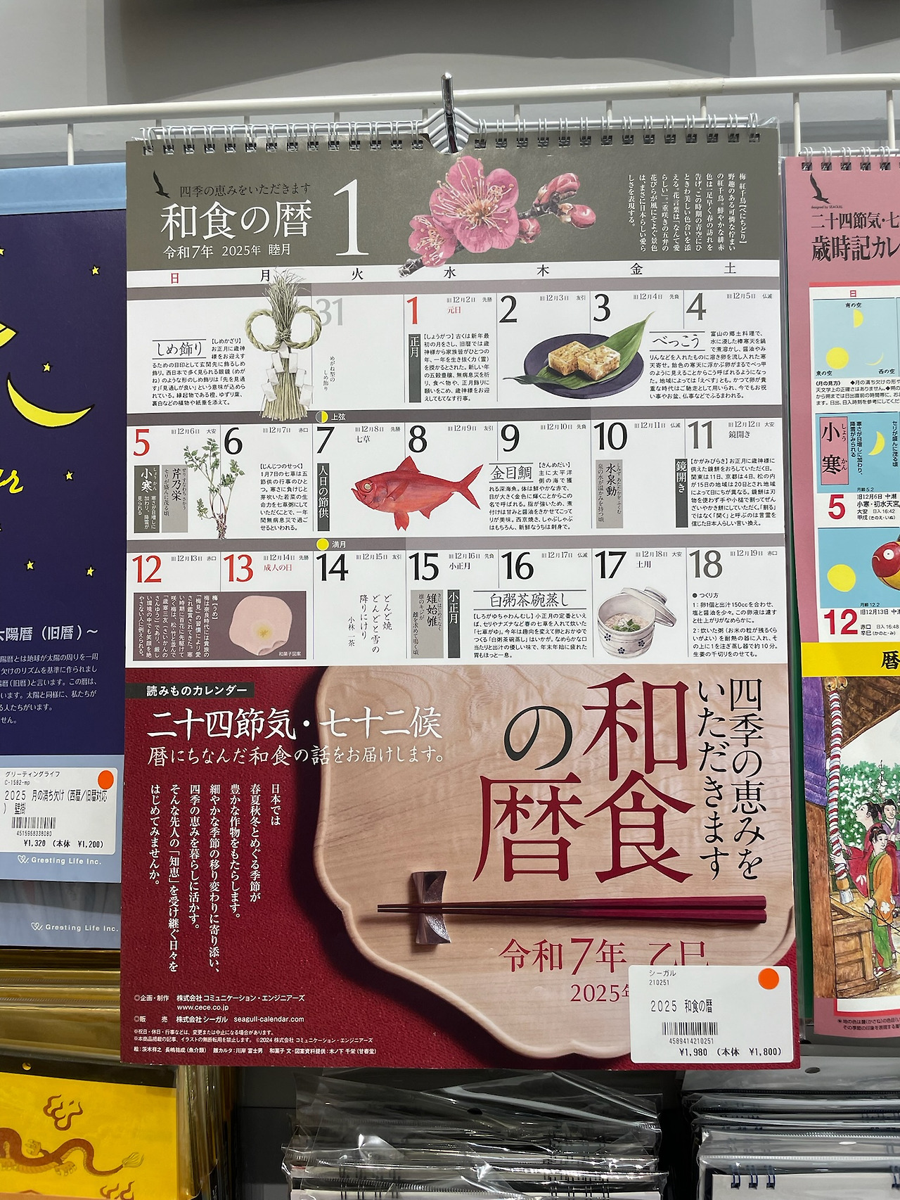 또 다른 중년의 남성은 사뭇 진지하게 메모를 하고 있었다. '달력을 보면서 무엇을 메모하지'라는 생각에 잠시 옆에서 다른 것을 보며 기다렸다. 몇 분이 지났을까, 중년의 남성은 이내 꼼꼼히 보던 달력을 여러 장 집어 들고 자리는 옮겼는데 그 남성이 보던 것은 다름 아닌 제철 음식이 기록되어 있는 달력이었다. 1월부터 12월까지 다양한 식자재를 소개하고 있었는데, 아마도 이 달력을 구매한 중년의 남성은 식당을 운영하는 사람이 아닐까라는 예상을 해보았다.