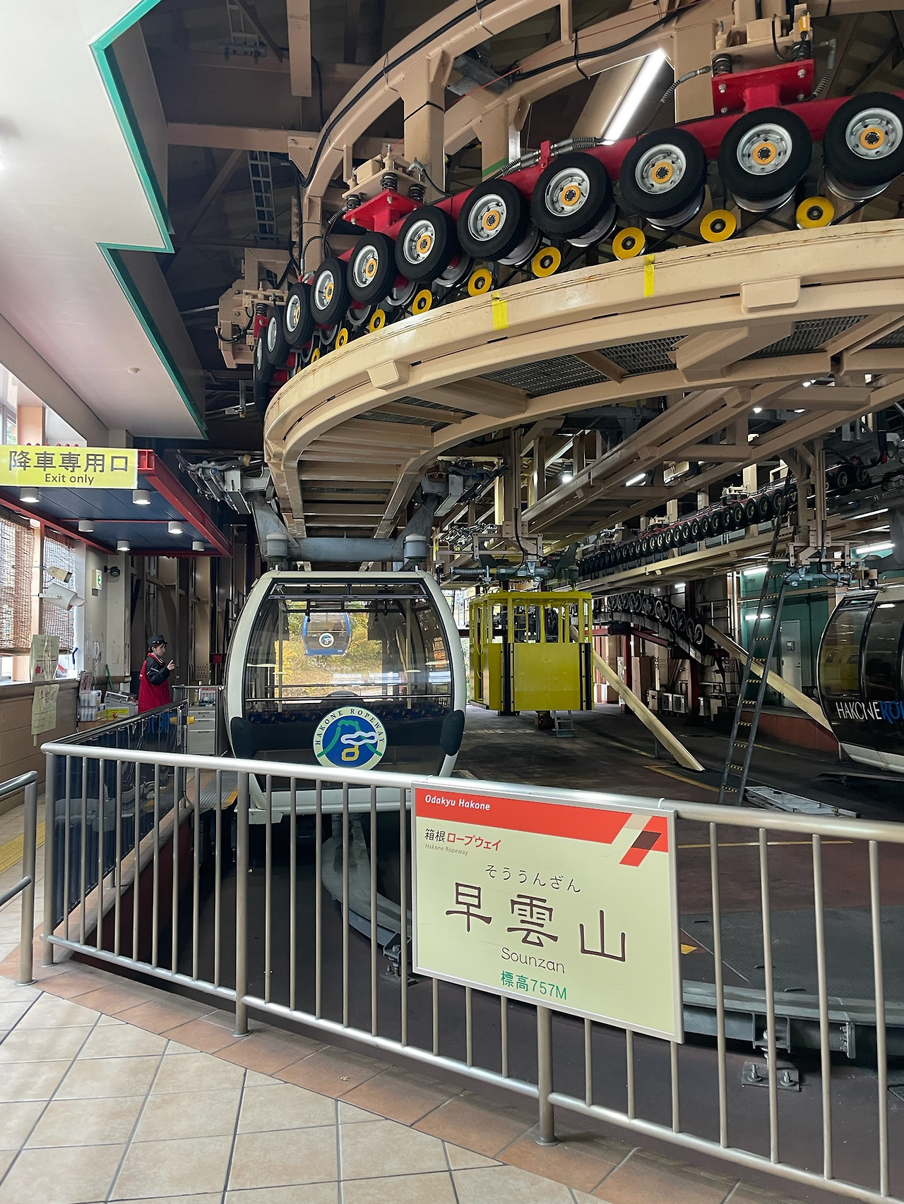 한참을 올라갔을까, 지그제그 등산열차에서 내려 가파른 경사를 모노레일처럼 올라가는 열차로 환승했다. 이 열차는 고라역에서 탑승해 소운잔역까지 올라가는데 상당히 높은 경사를 천천히 직선으로 올라간다. 그렇게 도착한 소운잔역에서 다시 한번 환승했는데, 정말 재미있는 경험을 했다. 바로 케이블카(로프웨이)를 탄 것이다. 하코네산 정상인 오다쿠다니까지 올라가는 교통수단 안에 케이블카도 함께 포함되어 있다니 우리나라에서는 케이블카는 항상 별도의 이동 수단인데, 이곳에서는 열차와 같은 교통수단으로 이어져 있는 것이 참신했다.