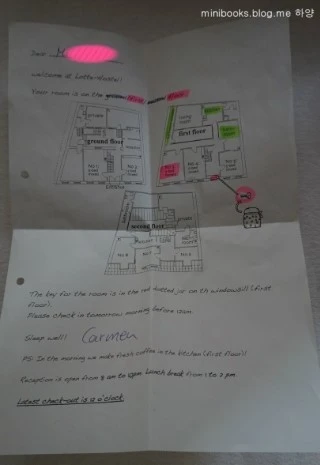 숙소 문 앞에 도착하자 내 이름이 보였다. 내 이름이 적힌 종이를 떼어 뒷장을 봤다.