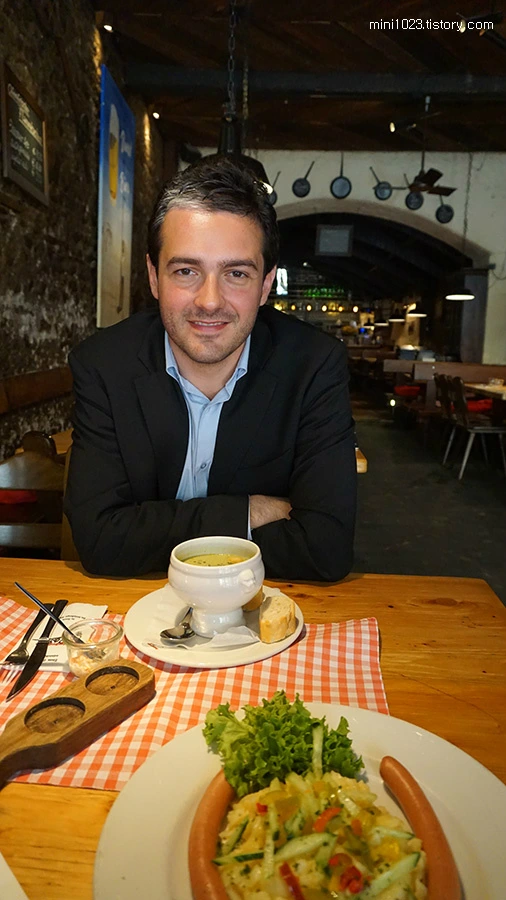 종업원과 독일어로 뭐라 뭐라 말하는데 말만 길지 별 얘기 아닌 거 같았다. ㅋㅋㅋㅋ 난 추천 받은 음식 중 메뉴 이름에 소시지가 있는 음식을 골랐다. 예전에 독일 소시지가 유명하다고 어디선가 본 거 같아서 그랬다.