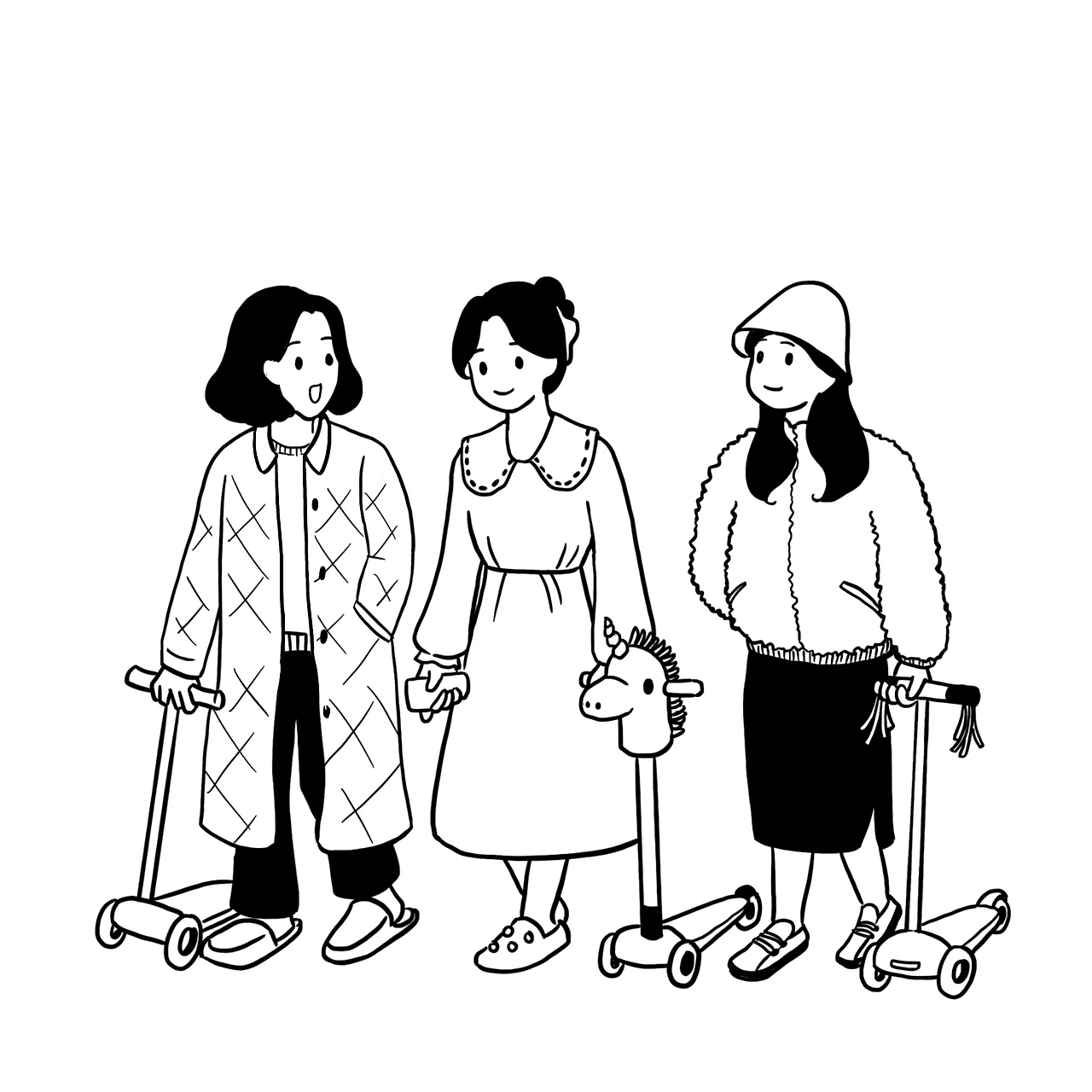 분주함 속에서도 예쁘게 코디를 한 엄마,