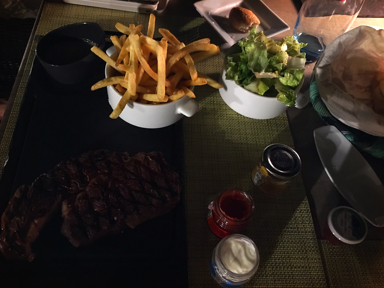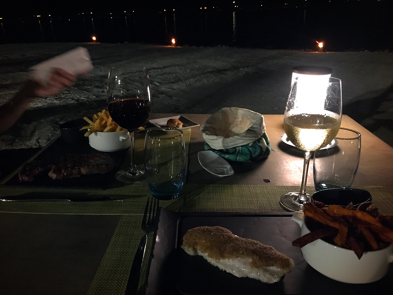 샌즈 레스토랑은 프랑스 요리를 주로 선사하는 곳. 다양한 생선 스테이크와 쇠고기 스테이크, 프랑스 와인 등이 준비되어 있다. 맛은 모두 매우 훌륭했다. 저녁 8시쯤 가서 깜깜한 해변 밖에 볼 수 없었지만 분위기가 매우 좋았다. 보라보라에서 간 레스토랑 중 맛은 일등.