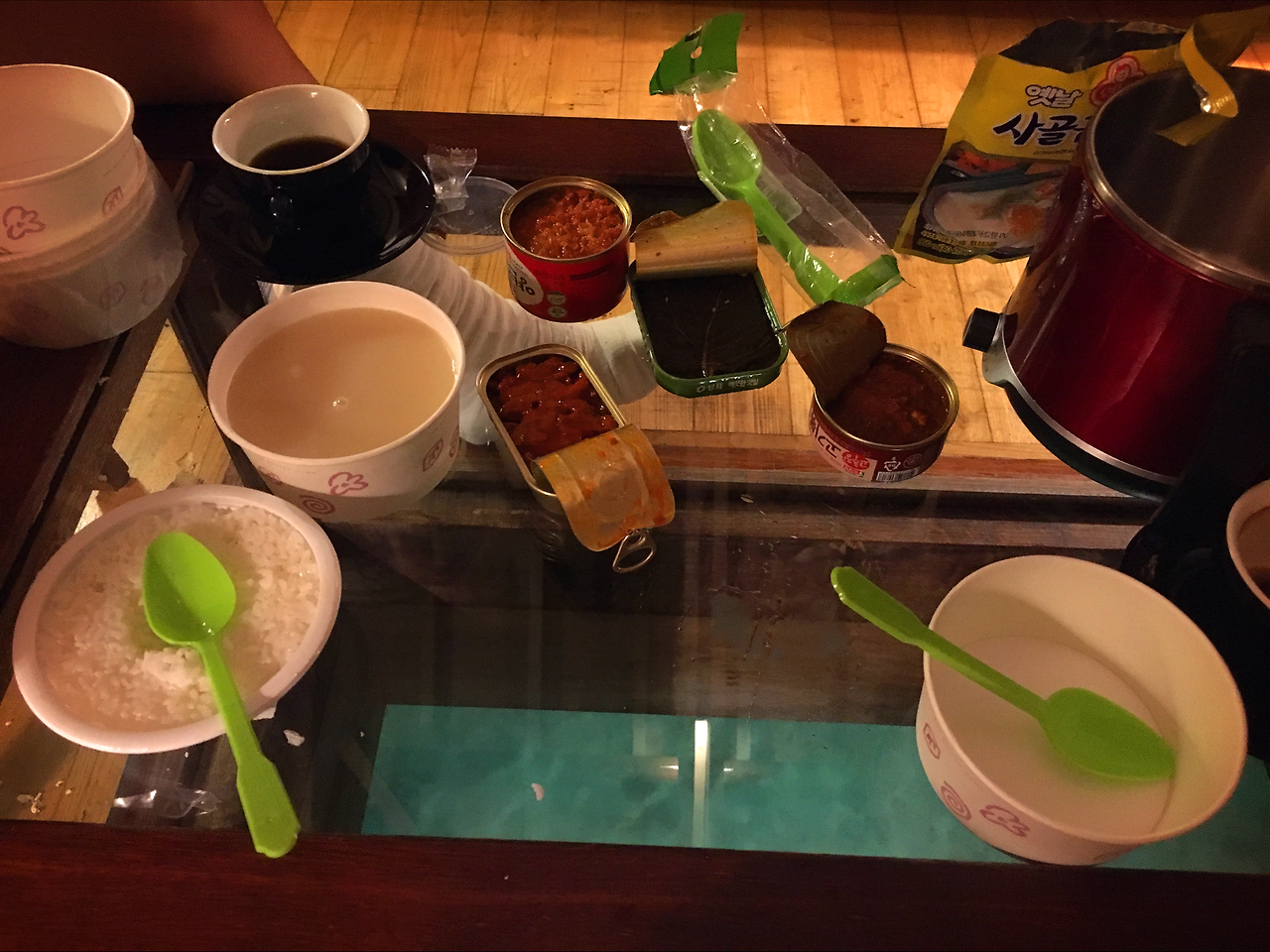 우리는 휴대용 라면 전기포트도 가져갔는데 여기에 라면을 끓인 후 스팸, 김치를 넣고 먹으면 꿀맛이었다.