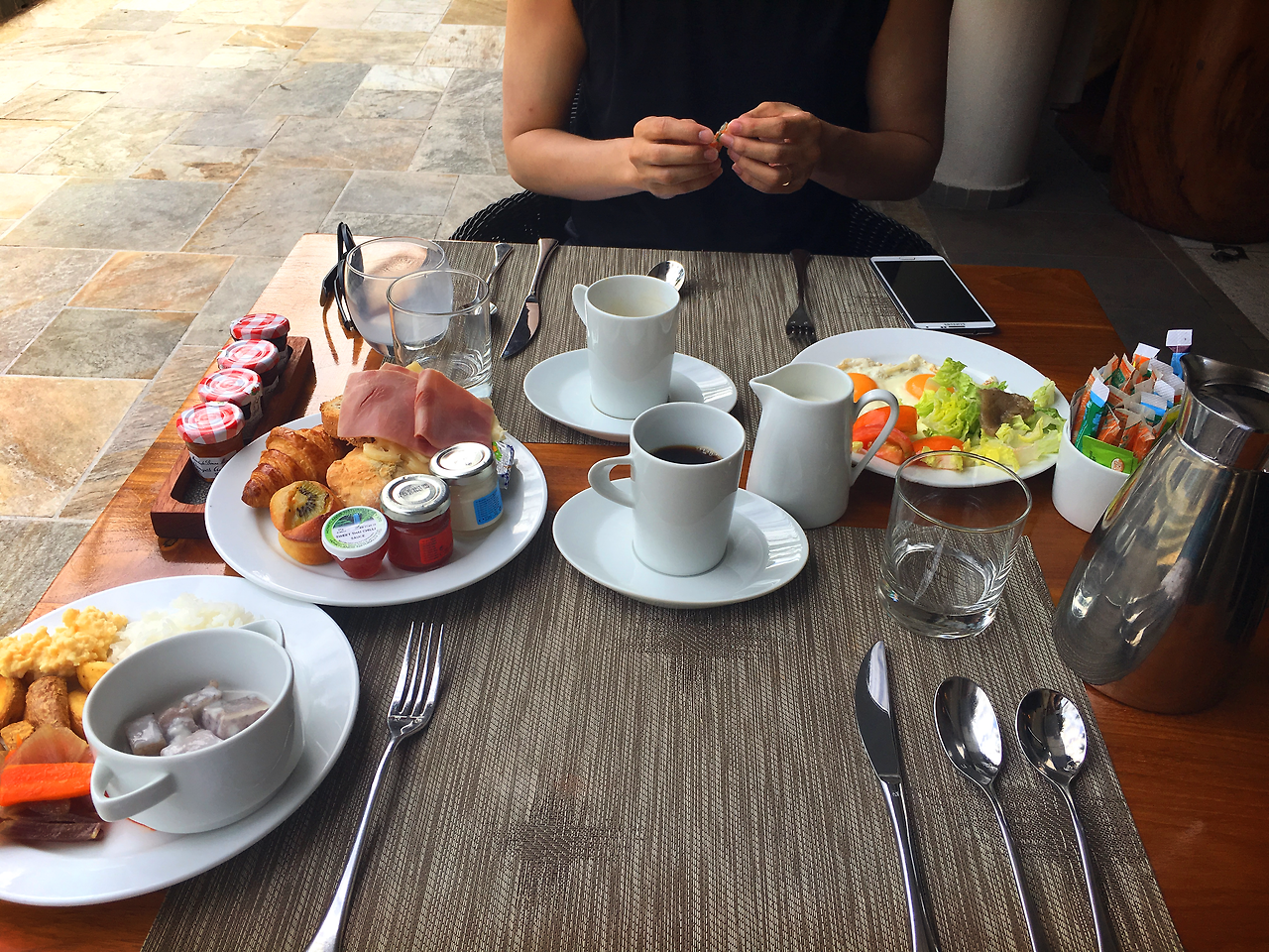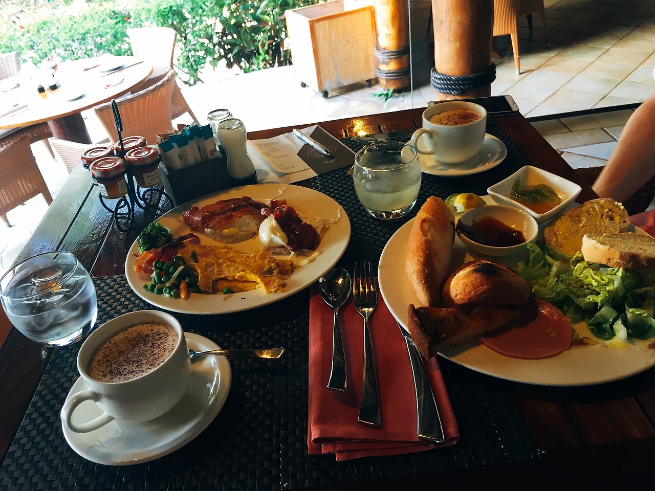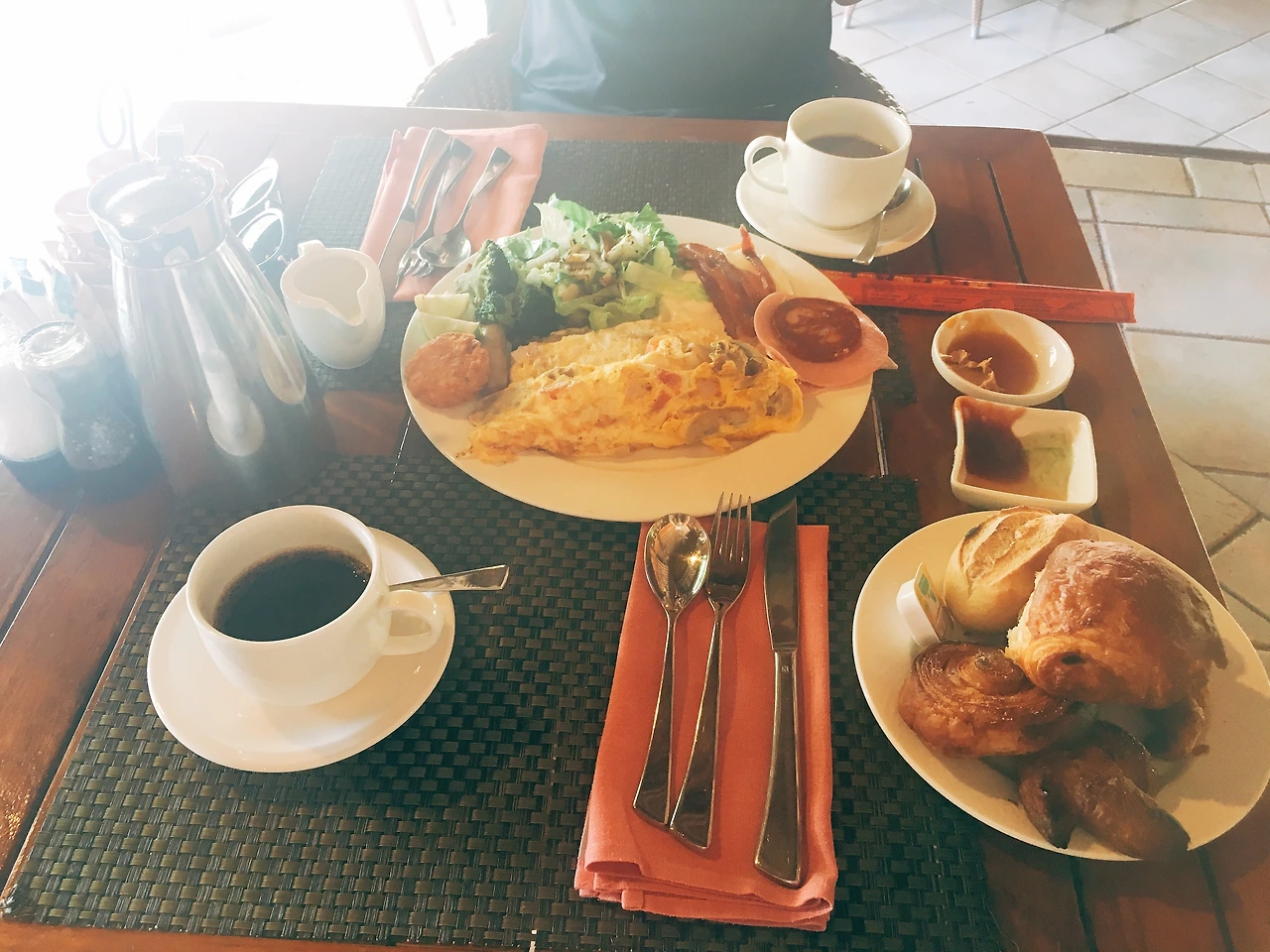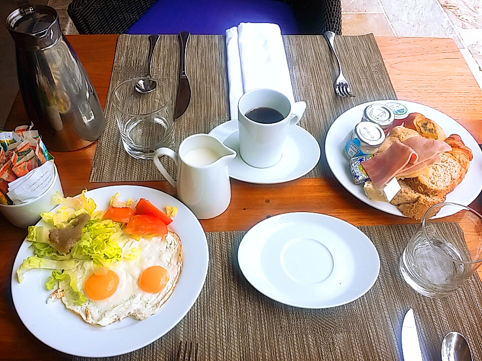 호텔 조식은 대부분 뷔페식. 아침에 레스토랑에 자리를 잡으면 직원이 다가와 차는 어떤 것으로 할지 묻는다. 나는 보통 카푸치노 한 잔을 시킨다. 그러고서는 접시에 그득 신선한 샐러드와 빵을 담고, 에그 베네딕트 혹은 스크램블 등 계란 요리를 주문한다. 호텔 중에 써니사이드업 등 간단한 계란 요리는 무료로 제공하지만 에그 베네딕트 등 좀 까다로운 계란 요리에는 추가 요금이 붙기도 하는데 보라보라 펄 비치와 인터콘티넨탈 탈라소는 모든 서비스가 조식 요금에 포함되어 있다. 이 얼마나 환상적인가.