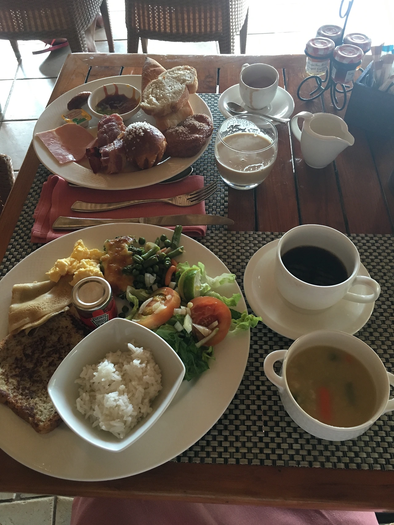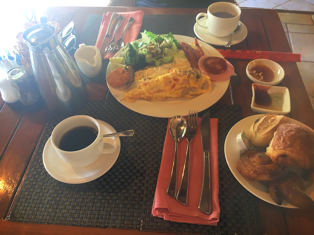 보라보라는 앞서 언급했듯이 프랑스 령이다. 그래서인지 빵이 참 맛있다. 해산물도 싱싱한 편. 열대과일도 다양하게 제공되는데 이를 이용해서 만든 수제잼이 요물이다. 그중 구아바 잼은 일품. 다양한 잼을 토스트 기에 따끈하게 구운 빵에 발라 한 입 먹은 후 커피를 마시면 행복이 밀려온다. 거기에 오믈렛과 싱싱한 샐러드, 각종 해산물을 즐기는 것이다. 그렇게 세 접시 이상 먹는다.