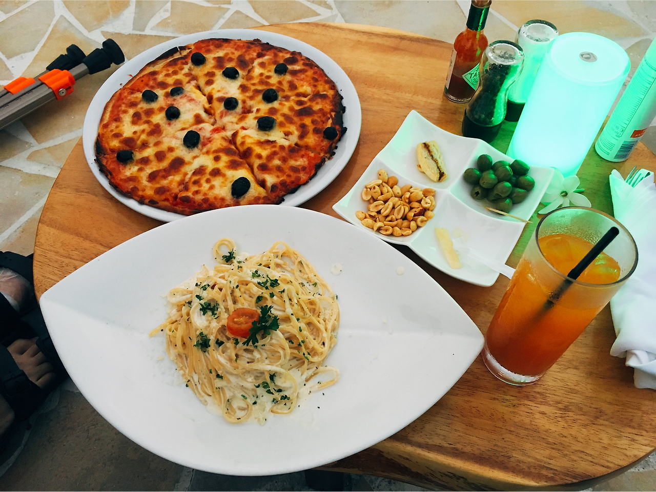 그다음 날 저녁은 미키 미키 바(Miki Miki Bar & Grill)를 이용했다. 미키 미키 바는 햄버거, 파스타, 브런치 메뉴 등을 가볍게 파는 곳. 크림 파스타 하나와 피자를 시켰는데 둘 다 고급 레스토랑에서 즐길 수 있는 그 맛. 충분히 맛있었다. 특히 노을이 멋져 해지기 전에 자리를 잡고 타히티 전통 음악을 들으며 밤까지 분위기를 즐겼다.