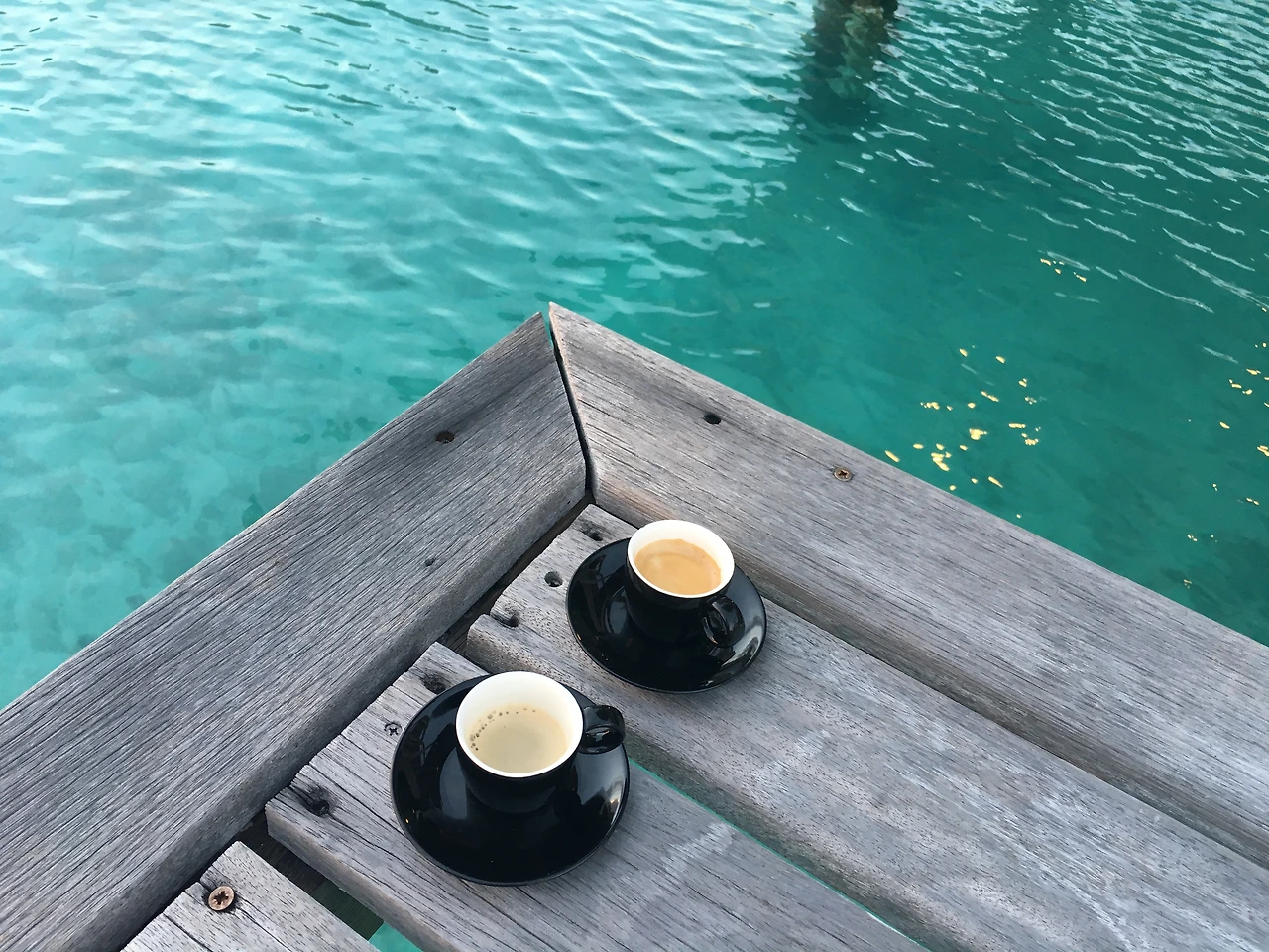 내가 수상빌라에서 묵고 싶었던 이유는 '물 위에서 자는 기분은 어떨까'라는 호기심이었다. 투명 유리로 되어 있는 바닥을 통해 실시간 물고기가 지나가는 것을 볼 수 있고 집 밖에 나오면 바로 남태평양 속으로 뛰어들 수 있는 구조이지 않는가.