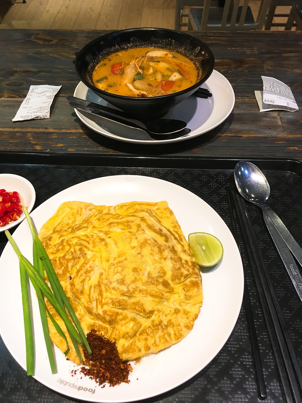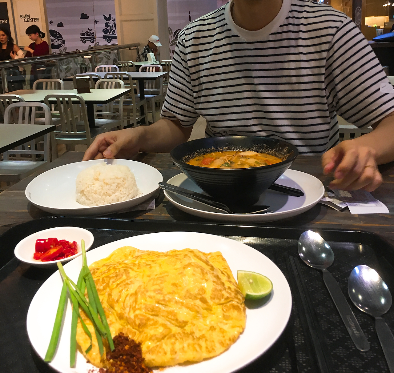 방콕 신시가지에는 대형 쇼핑몰이 죽 늘어서 있는데 마지막 날 우리는 한 대형 쇼핑몰 푸드코드를 방문했다. 마치 고양 스타필드 내 음식점들처럼 각각 콘셉트를 가진 다양한 음식점들이 푸드코드 형식으로 즐비해 있는데 이 중에서 우리는 똠얌꿍과 팟타이를 시켜먹었다. 맛은 좋았다. 맛집이라고 하지는 못하지만 가격 대비 위생과 맛 모두 훌륭한 편이었던 것.
