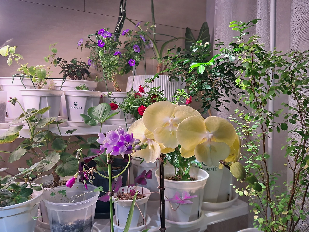 식물 키우면서 동향집은 꽃 식물은 포기하는 거에 가깝고 또 동향집 치고도 아침 햇빛마저도 참 잘 안 들어서 한 해 동안 빛에 대한 갈증이 항상 있었다. 우연히 지난번 꽃들을 전면 재배치하면서 보다 가까워진 식물등으로 아이들이 더 꽃을 잘 피울 수 있는 조건을 갖게 되어서 그랬던 것 같다. 애쓰고 있는 꽃들에게 저절로 가장 고파보이는 것을 주게 된 것이다. 덕분에 포기했던 다른 화초들, 밀리언벨, 삭소롬, 사랑초 등등 저절로 꽃망울을 만드는 걸 보면 최적의 온도, 광량이라는 게 확실하다는 걸 저절로 배우게 되었다. 제라늄이 준 선물에 보답하는 마음으로 성능 좋은 식물등을 하나 더 들이게 되었고 자신 없었던 호접란도 들이게 되었다. 덕분에 이른 봄이 집에 찾아온 것 같다.