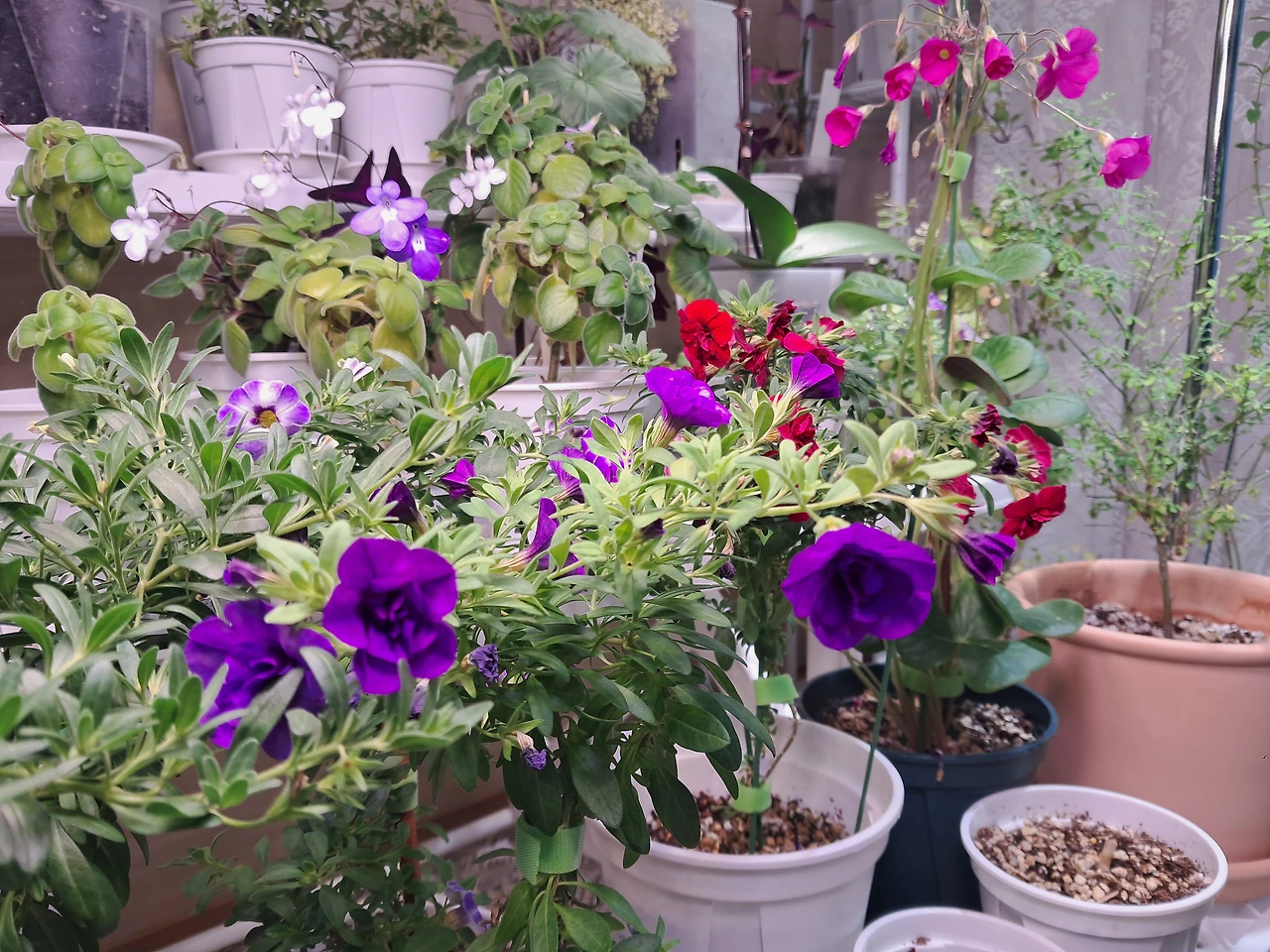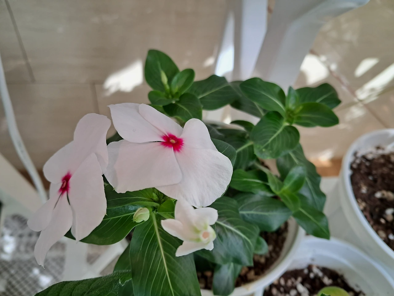 눈에 보이는 상태가 안 좋은 화분들이 있길래 정리를 하다 보니 자연스럽게 빈 공간에 다른 화분을 놓게 되고 더 잘 어울리는 화분들로 옹기종기 새로 자리를 잡았다. 그렇게 아주 잠깐동안 자리만 바꿔 놓았을 뿐인데 공간이 정돈돼 보였다. 꽃들도 다 하나하나 싱싱해 보이고 관리가 쉽게 보였다.