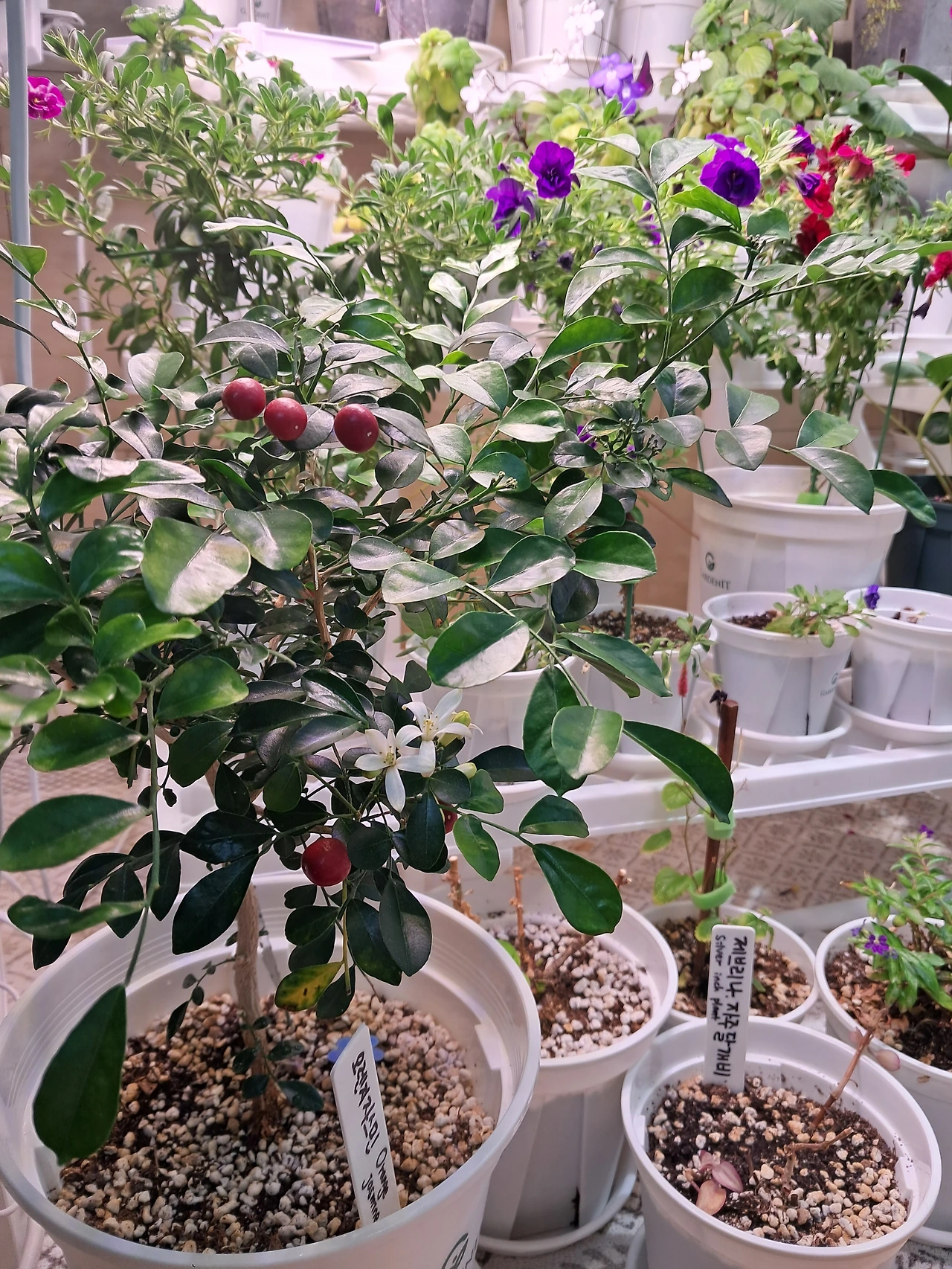 식물등에 갑자기 가깝게 자리 잡게 된 화초들은 잎새가 조금씩 그을린 듯 해 걱정을 했는데 여지없이 화려하게 꽃망울을 보여주고 있다. 그 모습에 내가 잠시 물시중이 게을러질 때면 미안한 마음까지 든다.
