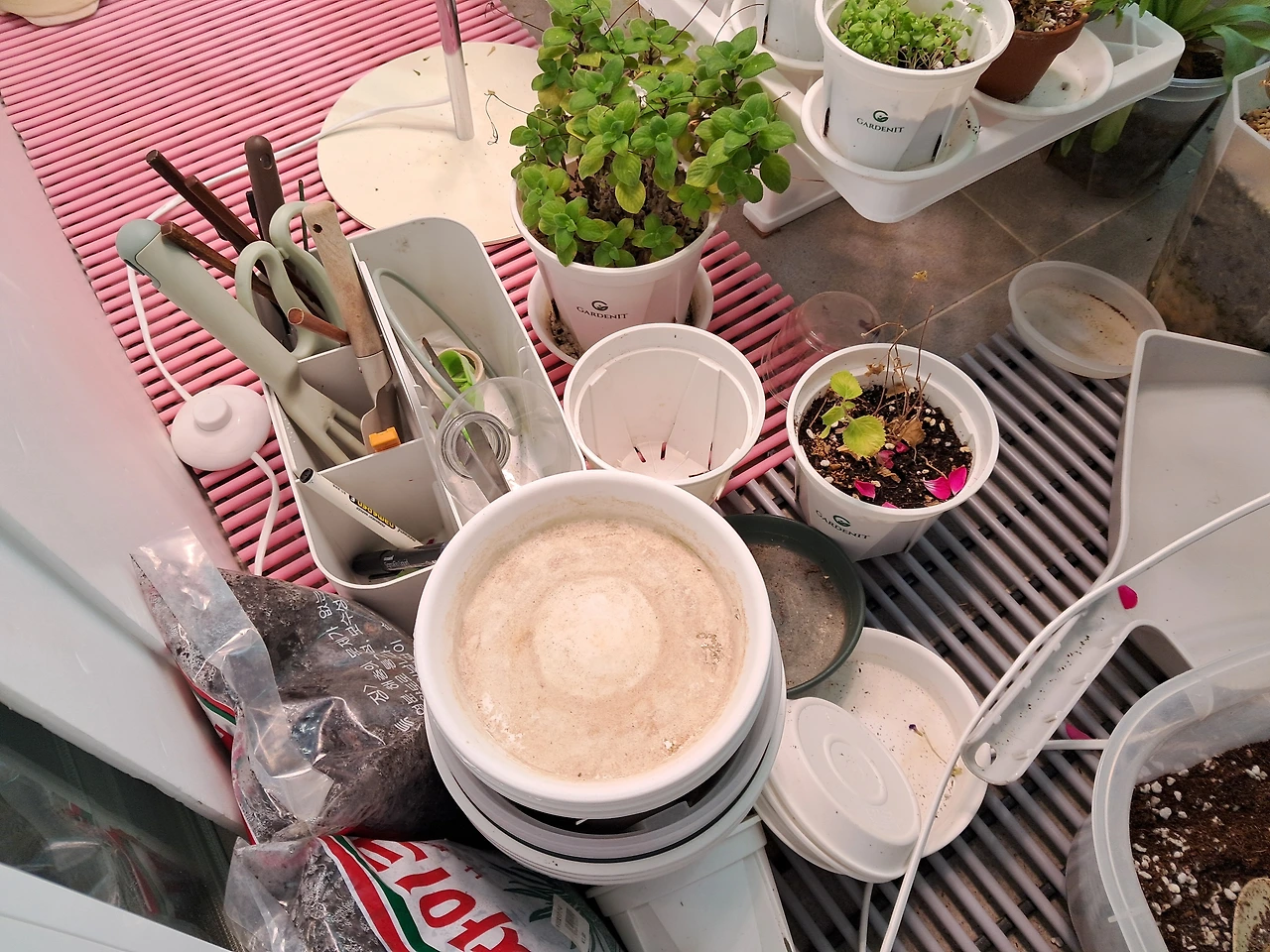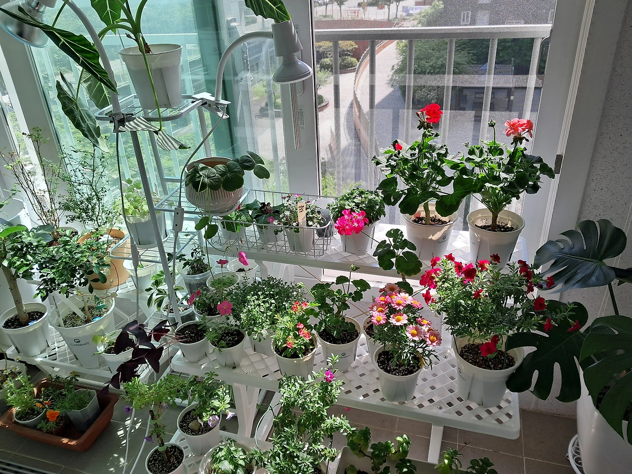 한정적인 공간에서 최대한 최적의 화분배치를 고민하게 되고 분갈이도 바로바로 하게 된다.