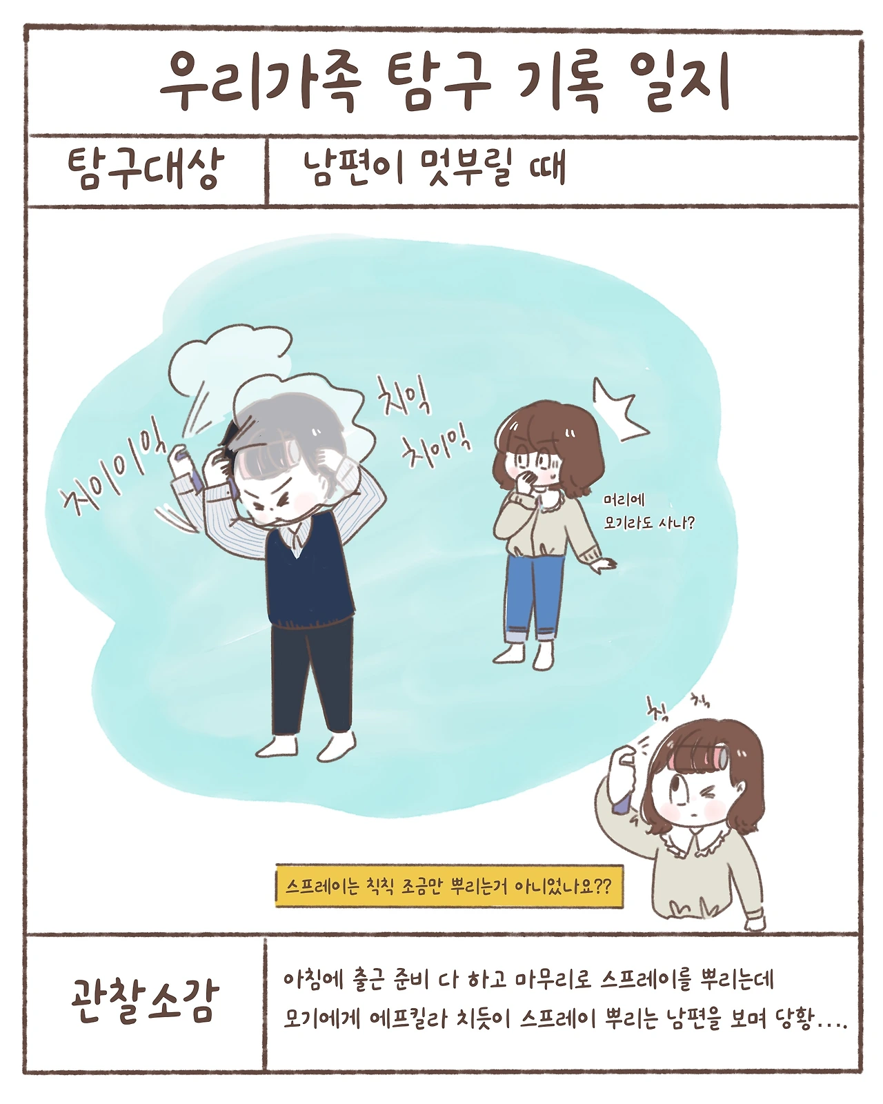 남편이 스프레이 뿌릴 때마다 에프킬라 뿌리는 것 같아서