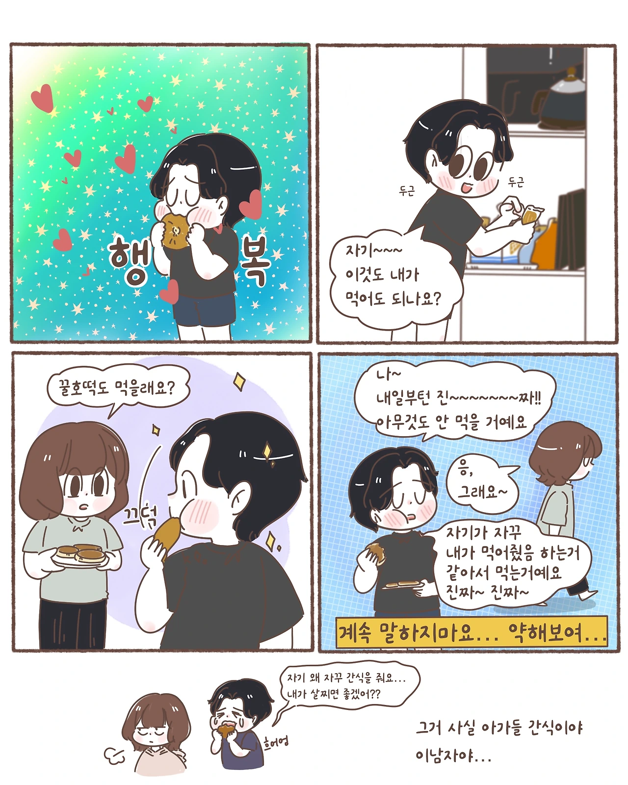오늘까지만 먹고 낼부터는 간식 안 먹을 거라고