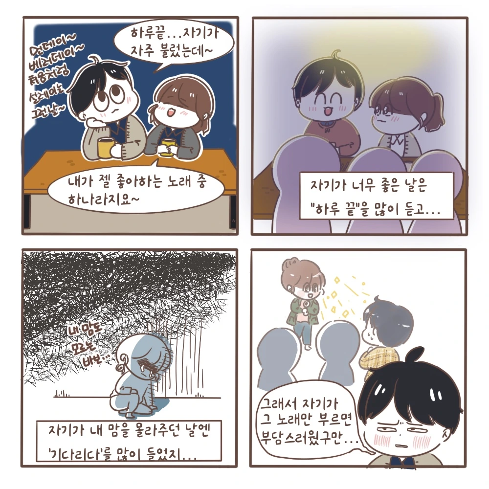 ‘하루 끝’과 ‘기다리다’는 더 애틋한 느낌이 있어요