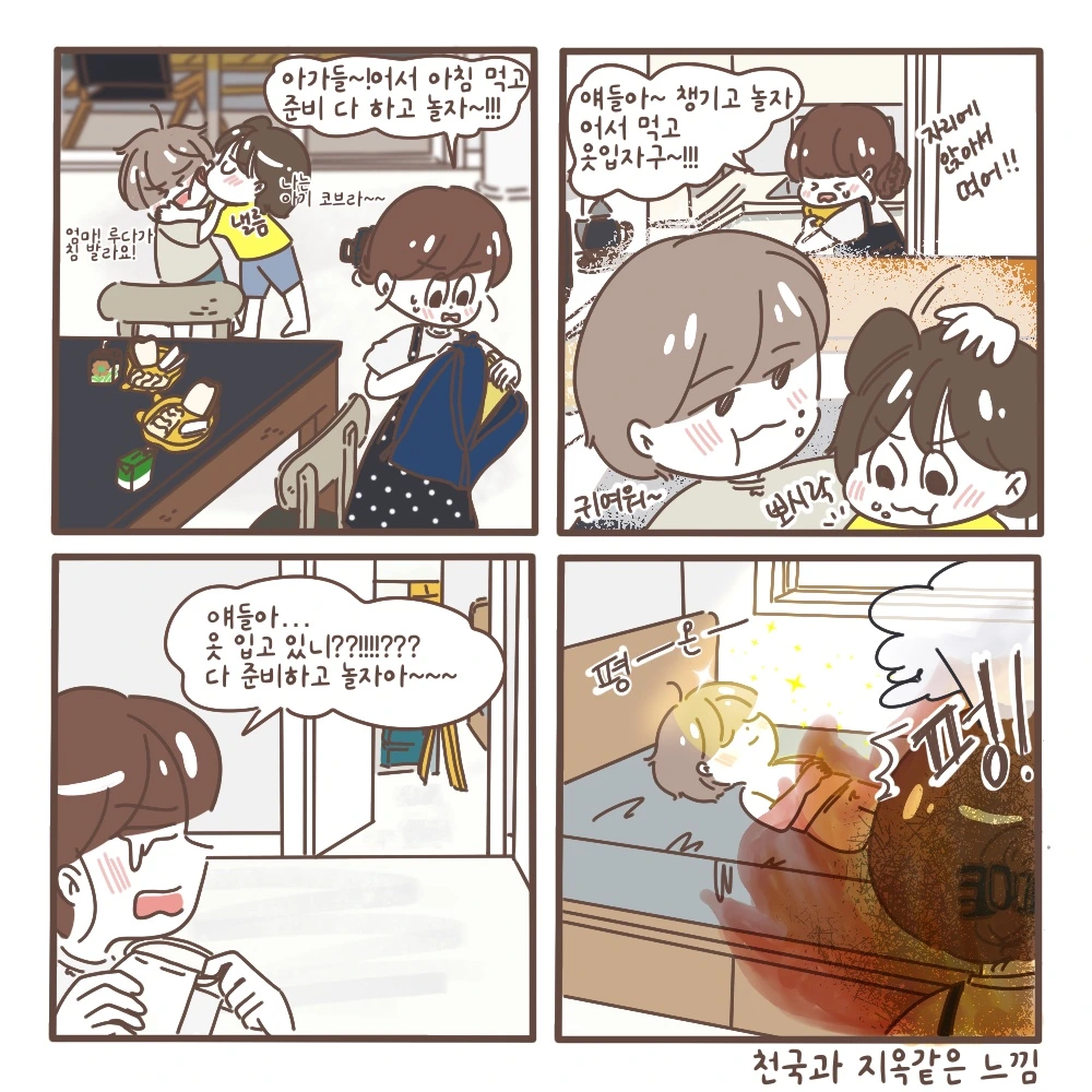옷 입으라고 해도 여유롭게 벌거벗고 노는 아이들을 보다 보면 무언가가 마구마구 끓어오르는 엄마의 아침 전쟁시간