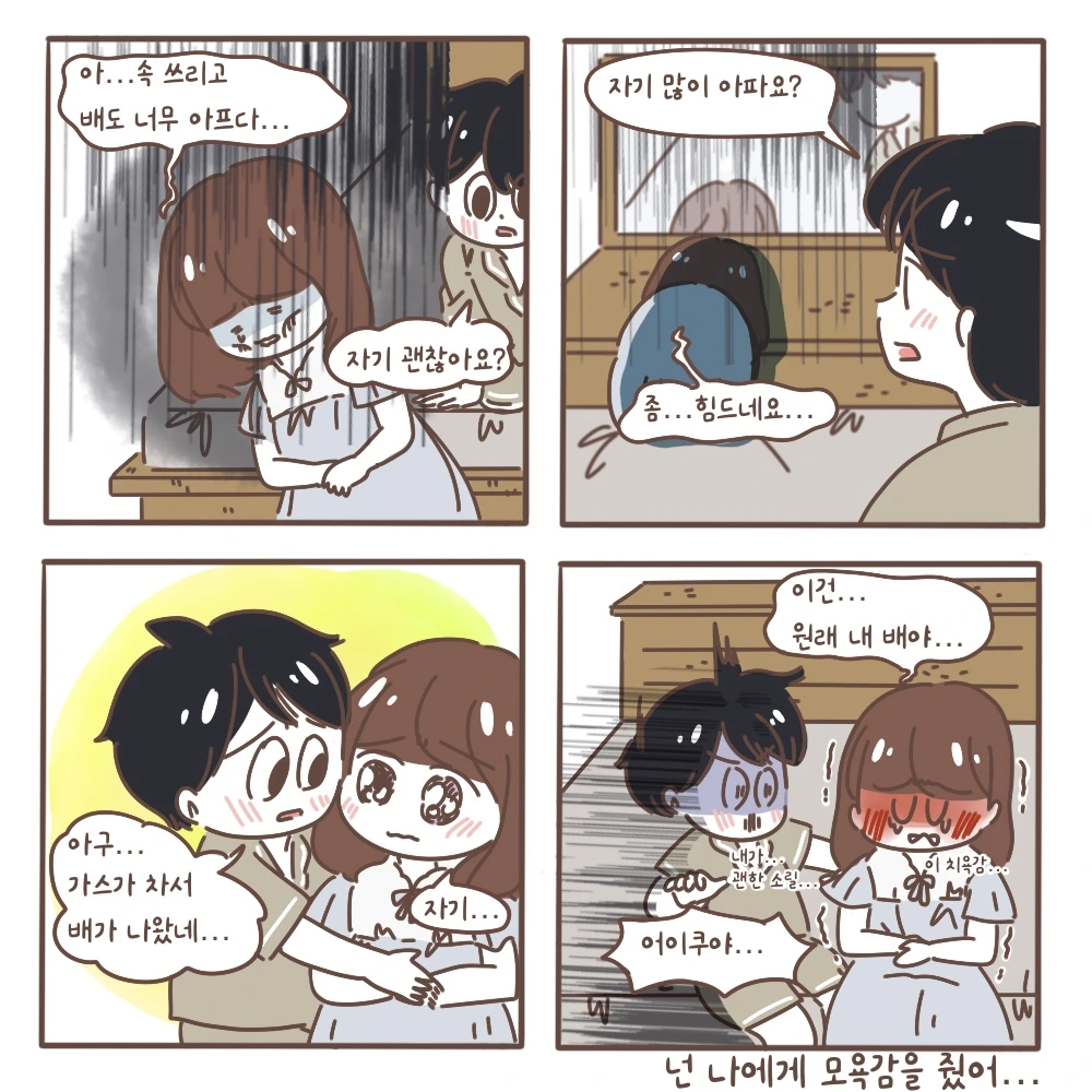 우리 자기 진짜 배가 많이 아픈가 봐!!