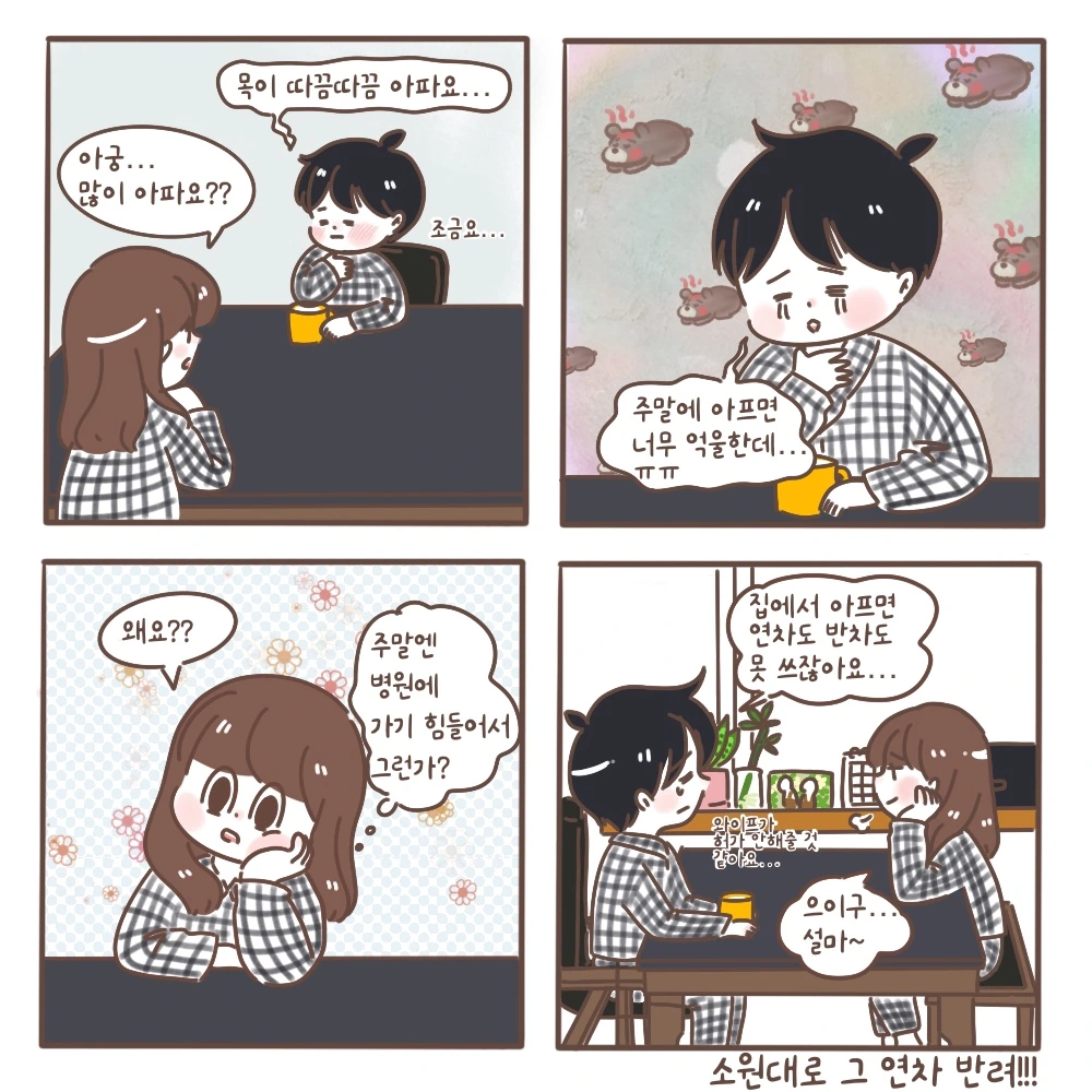 #일상기록#생활툰#부부일상#개그툰#힐링#아픈남편#쉬고싶다#억울하다#연차쓰고#푹쉬고싶다#연차반려#소소한일상의행복#소복이툰#남자셋과살고있습니다