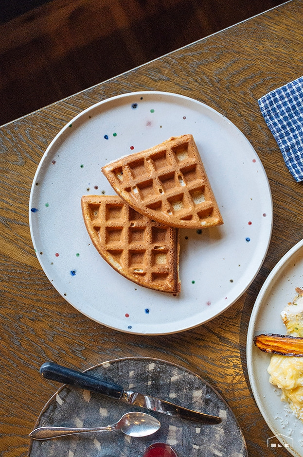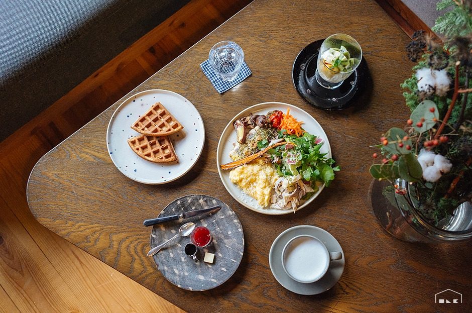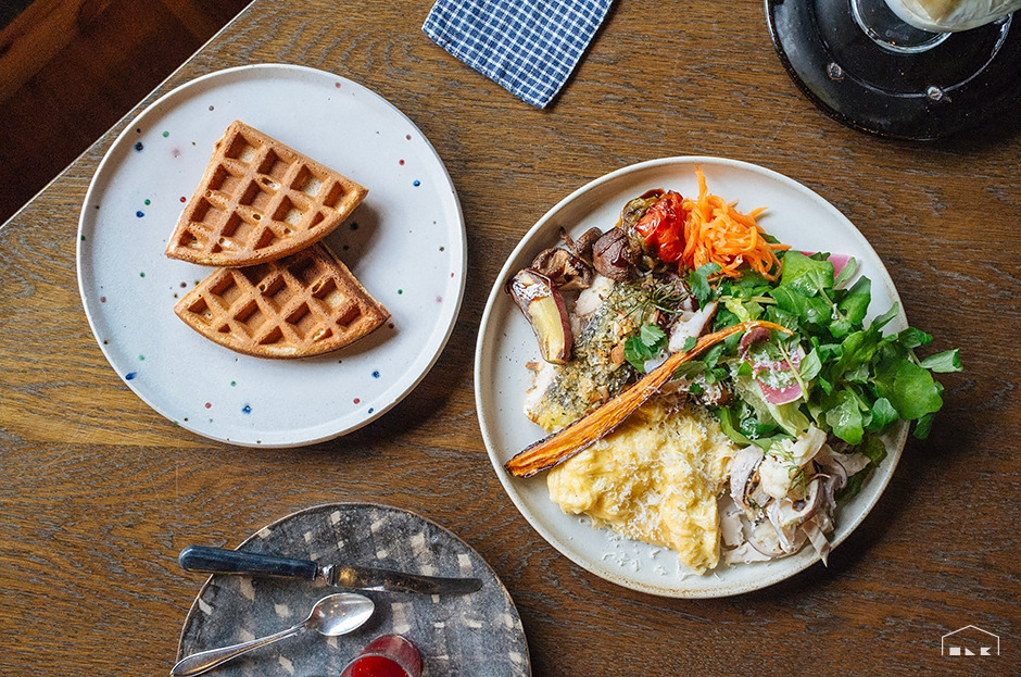 거기서 끝이 아니었다. 목을 축일 포근한 스팀 밀크와 벨기에식 와플과 시럽, 치즈로 꾸린 디저트까지 내오면서 테이블이 가득 찼다. 이네의 재료를 서양식 아침으로 재해석한 토마의 솜씨는 요리가 돋보이는 멋스러운 플레이팅만 보아도 알 수 있었다.