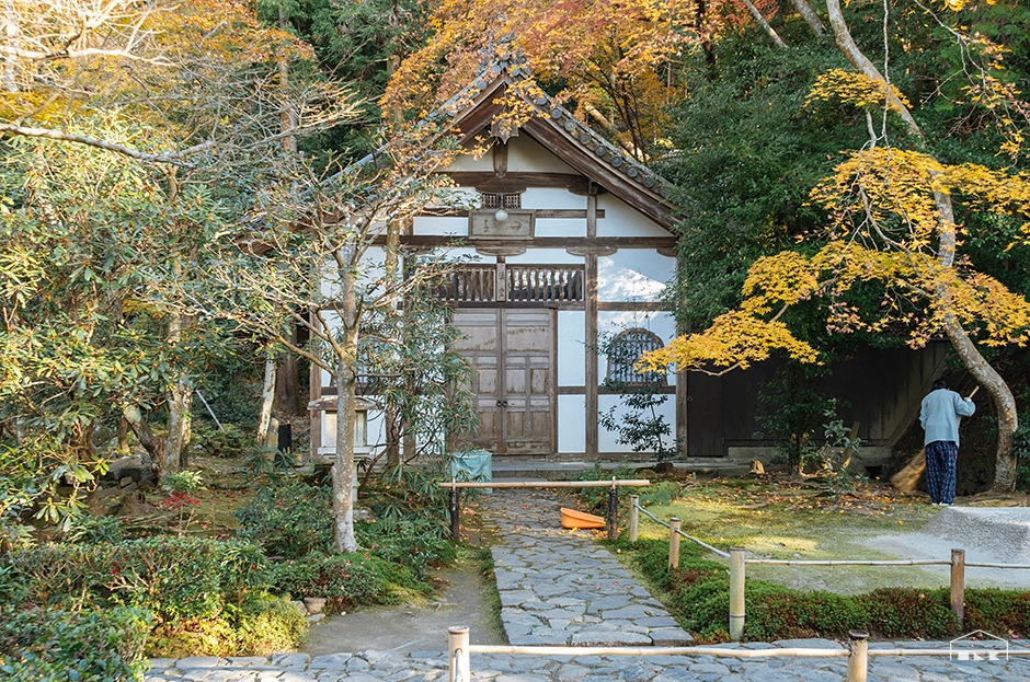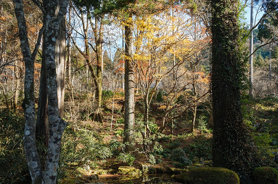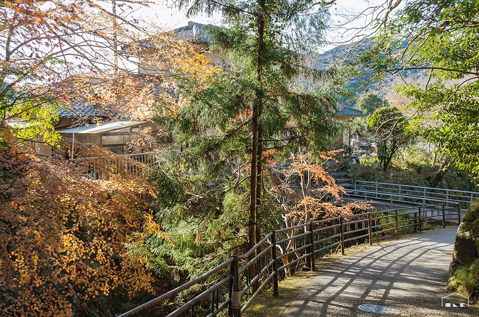 굽이진 오솔길을 따라 아랫집과 윗집 사이를 찬찬히 밟았다. 아직 남아있는 단풍을 보고서 반가워하다 냇물에 졸졸 씻겨내리는 낙엽 소리를 듣고서는 아쉬워했다. 가을의 끝자락이 무색하게 마을 중턱에 오르자 짙은 녹음이 펼쳐졌다. 그 속에 안긴 사찰이 고요히 모습을 드러냈고, 700년 이상 가꿔온 소나무가 심긴 ‘호센인’에 다다랐다.