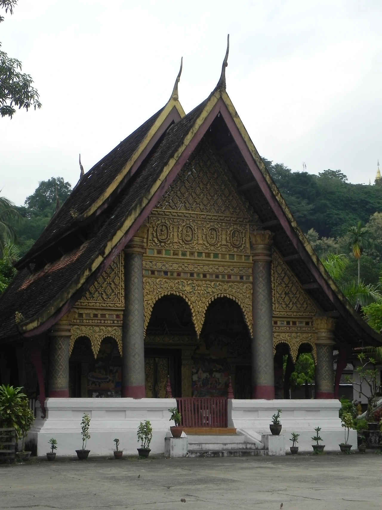 라오스는 인구의 대부분이 불교를 믿는 불교국가라고 한다. 특히 천년고도(千年古都)인 루앙프라방에는 크고 오래된 사찰이 도시 곳곳에 많다고 그녀는 내게 설명해주었다. 우리는 기온이 올라가기 전에 도시를 둘러보기로 했다. 길은 여전하다. 어디까지고 내가 걷고 싶은 만큼, 그리고 걸을 수 있는 만큼 우리를 어딘가로 이끈다. 흐린 하늘 아래에서 우리는 작은 가게에 들러 커피가루와 작은 과자, 그리고 비어라오 두 캔을 샀다. 가게 앞에서 맥주를 마시고 나서 바로 옆의 사찰에 들어가 보았다. 라오스의 사찰은 도시 안에 있다. 종교와 삶이 가까이 붙어있다는 의미 이리라. 사찰 건물은 대부분 단층인데, 특이하게도 건물 본체의 높이보다 지붕 자체의 높이가 더 길다. 어쩌면 사찰 양식이 아니라 라오스의 전통 건축양식 인지도 모르겠다. 지붕이 저렇게 높으면 확실히 실내가 더 시원해질 것 같다. 이곳의 사람들은 여기서 얼마나 오랜 시간을 살아왔을까? 지금의 나는 아직은 알 수 없는 많은 지혜와 경건함이 이곳을 가득 채우고 있다.