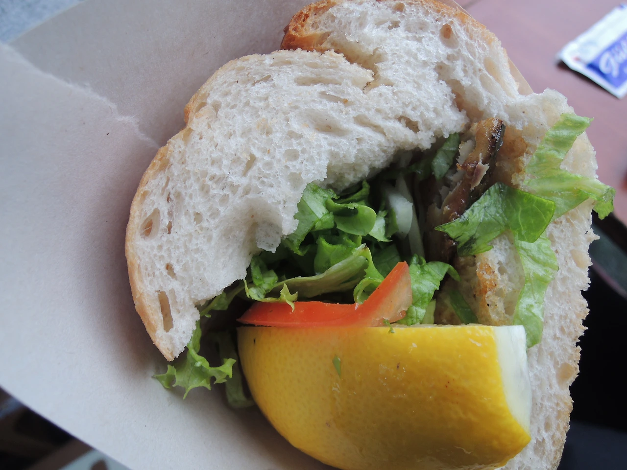 잠시 후 샌드위치처럼 포장된 고등어 케밥이 나왔다. 레몬을 뿌려 한 입 먹었는데... 너무 맛있는 거다. 비리고 어울리지 않을 거라는 내 예상을 간단히 넘어서는 그런 맛.