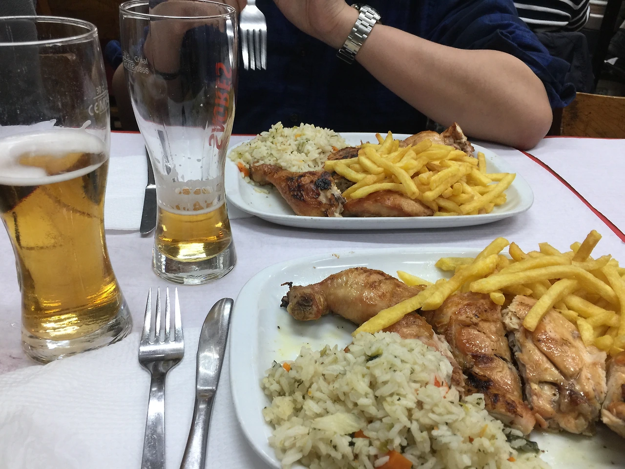 우리는 맥주 한 잔씩, 그리고 구운 닭과 감자튀김, 쌀요리를 한 접시에 담은 메뉴를 선택했다. 맥주는 시원했고 음식은 맛있었다. 그러고 보니 간단한 포르투갈 말이라도 공부해야겠다는 생각이 든다. 일단 여기서 한동안 살아야 하니 말이다.