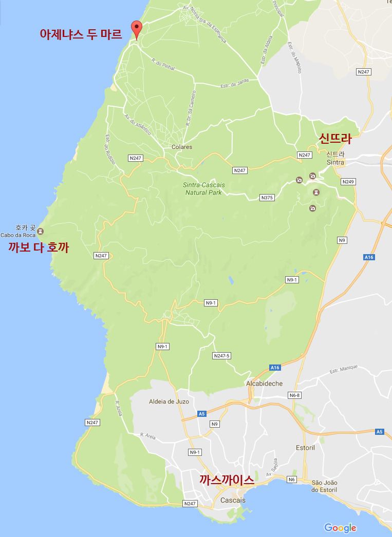 한국에서 본 TV프로그램에서 우연히 알게 된 곳, 아제냐스 두 마르. TV에서 잠깐 봤을 뿐인데, 꼭 가보고 싶었다. 신뜨라에서 버스를 타고 다시 들어가야 한다는 게 좀 귀찮아서 미루고 미루다 여행 막바지에 이르러서야 가볼 수 있었다. 신뜨라에서 굽이굽이 버스를 타고 가는 중간중간 꽤 괜찮은 풍경들을 많이 만났다. 시간만 있었다면 찬찬히 내려서 둘러보고 싶기도 했다. 특히, 신뜨라에서 트램을 타고 아제냐스 두 마르 근처까지 갈 수 있었는데, 다음 번에 가면 꼭 그 트램을 타보리라 생각했다. 아제냐스 두 마르에서 나올때는 중간에 내려 403번을 타고 호카로 갈 수도 있고, 441번을 타고 신뜨라로 돌아올 수 있다. 참고로 신뜨라로 돌아올때는 Vila Alda - Casa do Eléctrico de Sintra 앞에서 내리면 되고, 내린 버스정류장 앞에서 신뜨라 트램을 타 볼 수 있다. 참고로 아제냐스 두 마르에는 슈퍼마켓이나 상점은 보이지 않고, 레스토랑 두 곳만 영업중이었다.