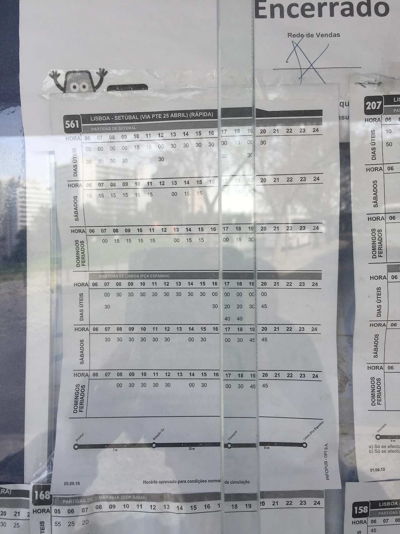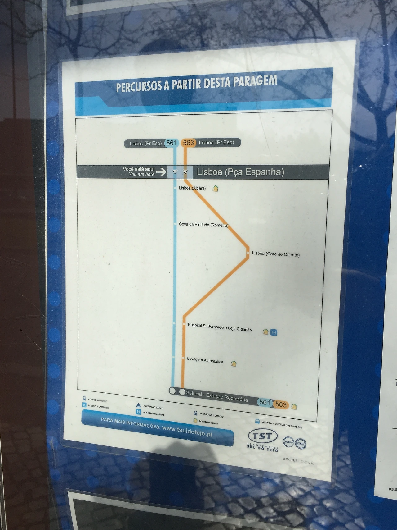 검색에 검색을 더한 끝에 Sete Rios 기차역에서 기차로 갈 수 있다는 겨우 정보만 얻었다. 포르투갈 기차 홈페이지에서 세투발에 가는 기차 시간을 확인하고, 세투발로 가는 기차가 하루에 몇 대 없었기 때문에 아침 일찍 아파트를 나섰다. 하지만 이른 아침 뭔가 하는 일이 서툰 우리는 버스를 탔지만, 기차 시간 전에 Sete Rios 기차역까지 갈 수 없었다. 그 기차를 놓치면 꽤 많은 시간을 기다려야 했기에, 결국 구글 어딘가에 있었던 확실치 않은 정보에 의지 하기로 했다. 그 정보란 Praça de Espanha에서 세투발까지 가는 버스가 있다는 것이었다. 하지만 몇 시에 출발하는지, 버스요금은 얼마인지 알 수 없었다. 확실한 것은 하나도 없었지만, 우리는 시간에 쫓기는 여행자는 아니었기에 무작정 Praça de Espanha에서 내렸다.