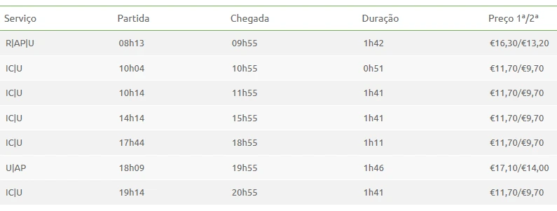 - Sete Rios 기차역→Setúbal 기차역 (편도 2등석 기준 9.70유로)