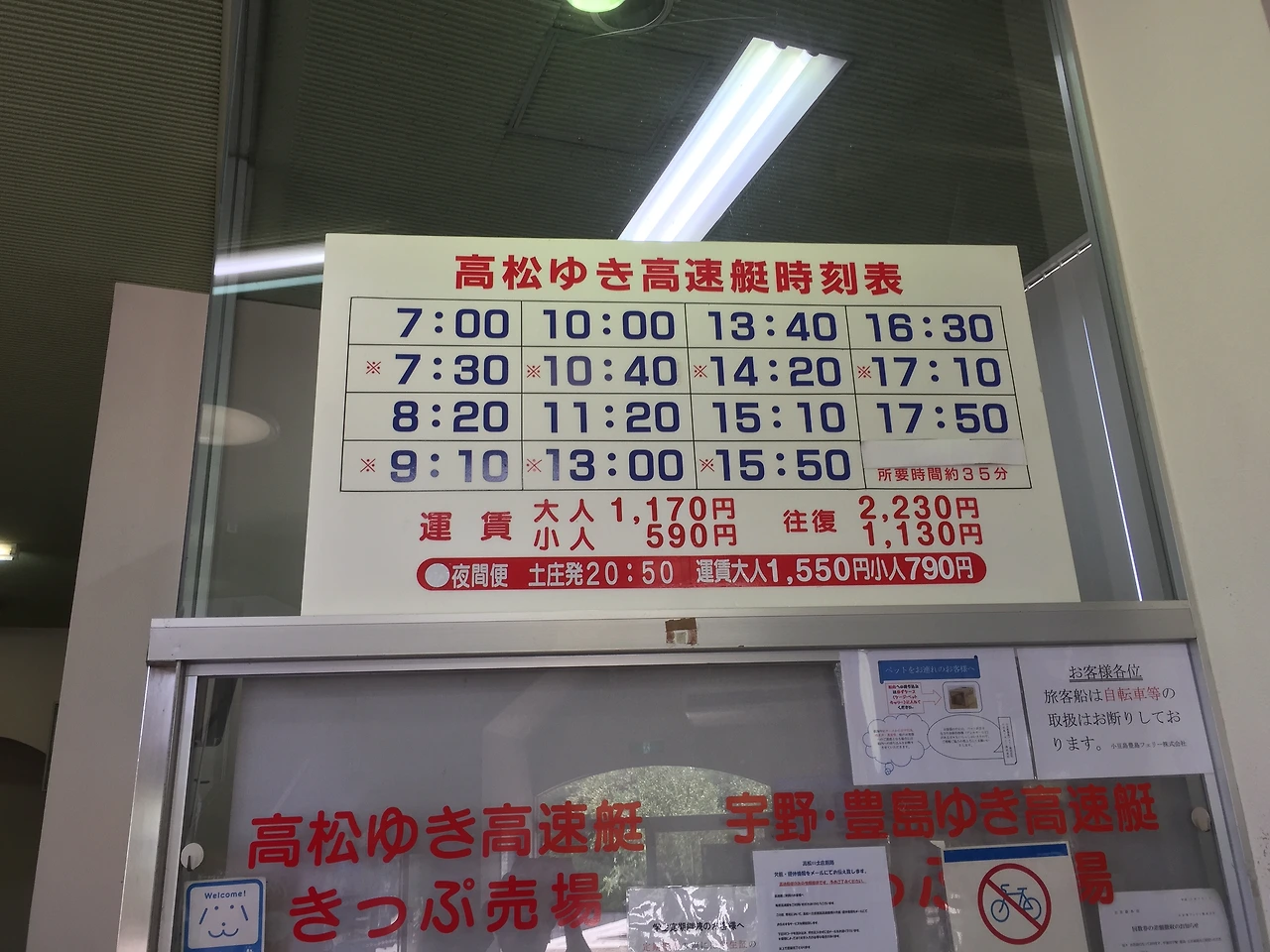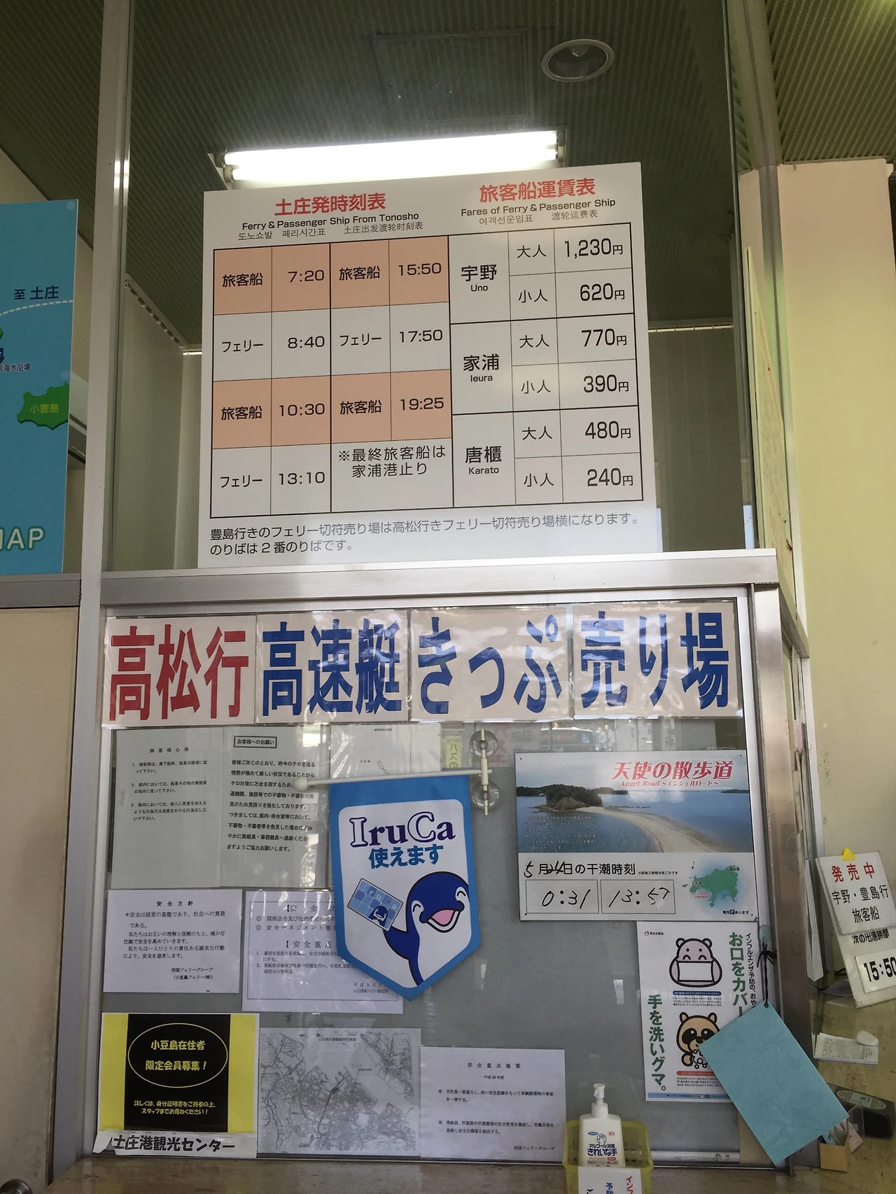 가방에 있던 코로로 젤리를 꺼내 우물거리며 20분을 걸어 도노쇼항에 도착했다. 그리고는 데시마 가는 시간표부터 찾았다. 영어는 커녕 히라가나도 아닌, 오직 한자로만 가득 써 있는 시간표에서 간신히 찾은 데시마행 배의 출발 시각은... 오후 3시 10분?! 내가 도노쇼항에 도착한 지금 시각은 겨우 12시;;;